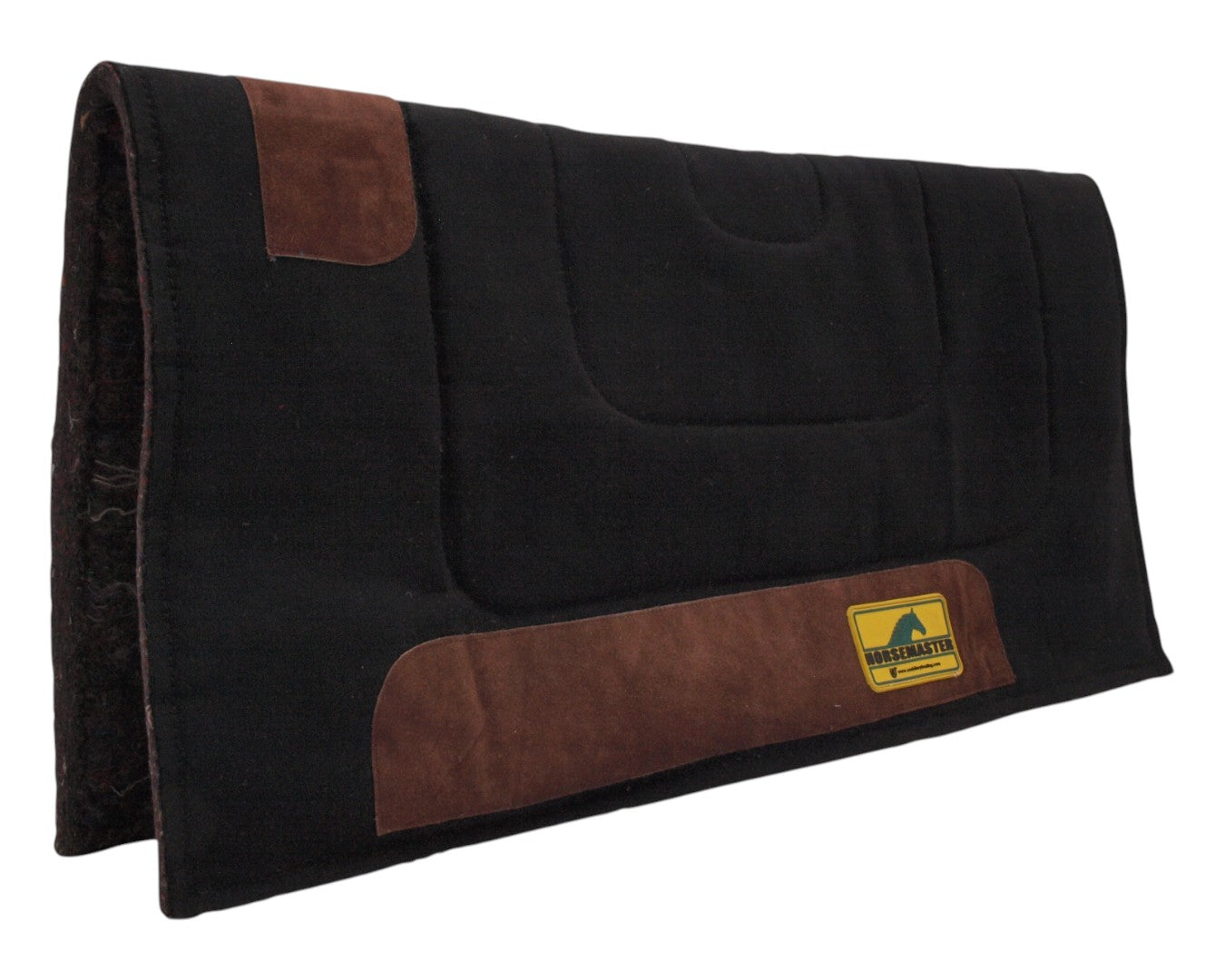 Upgrade your horse's comfort and protection with the Horsemaster Felt Lined Canvas Saddle Pad. This sturdy pad features a heavy-duty canvas outer shell and a soft felt lining that absorbs shock and helps prevent saddle sores, making it ideal for everyday riding or work. Reinforced suede side and wither panels deliver extra durability where it counts, ensuring long-lasting use even under tough conditions. Its generous 32" x 32" (81cm x 81cm) size provides plenty of coverage for most Western and stock saddles. Discover lasting performance and reliable comfort—invest in quality today.