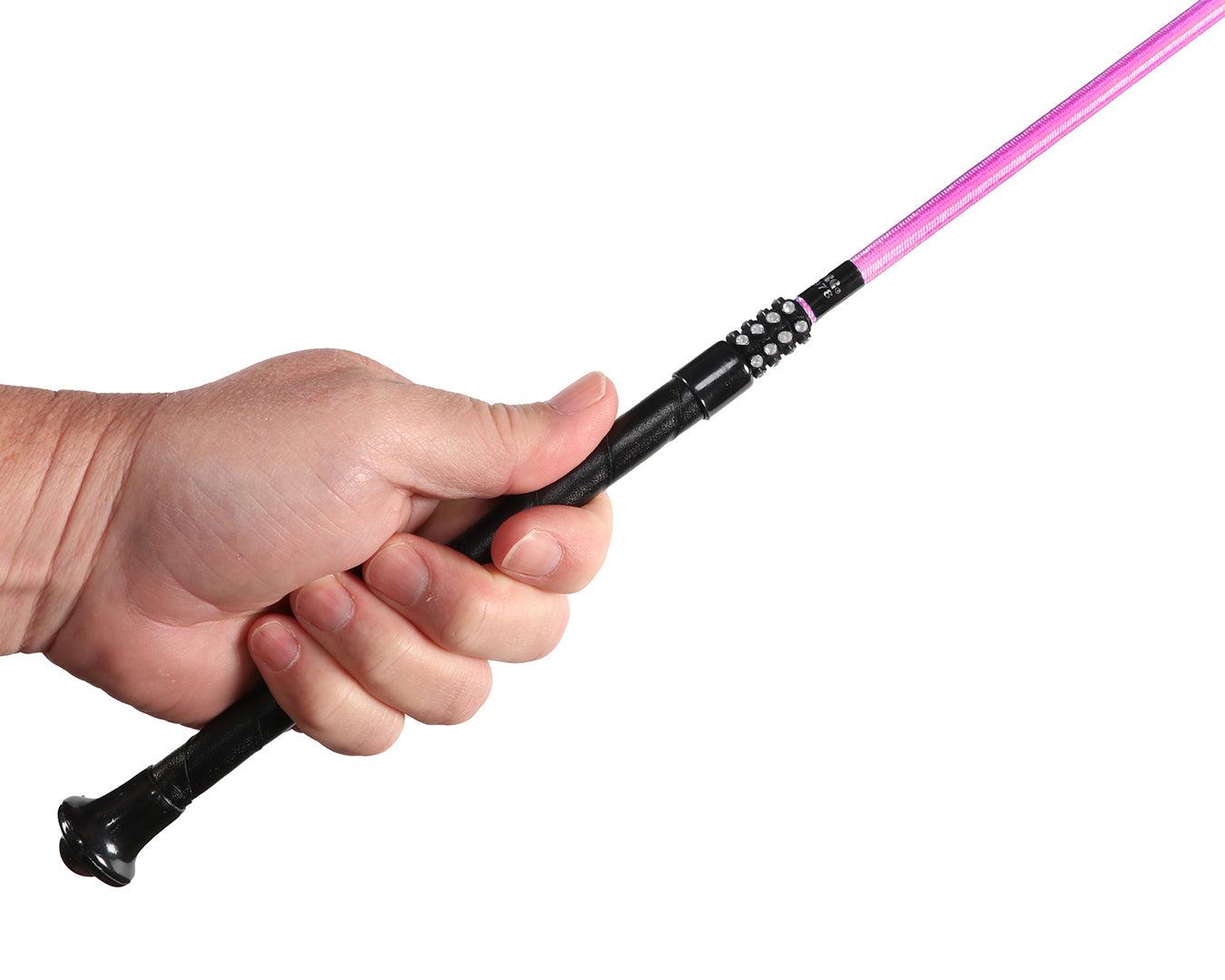 - At the base of the handles, four rows of diamond like sparkles match the colour of the whip shaft.