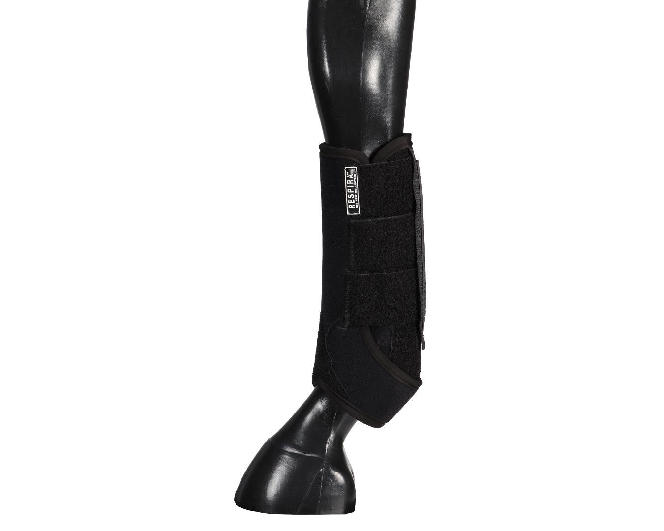 The Respira front shin guards, available at Greg Grant Saddlery, are the result of careful research for the well-being of the horse. Thanks to the use of perforated neoprene on the inside, they guarantee high breathability and comfort.