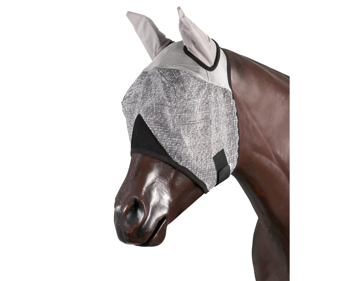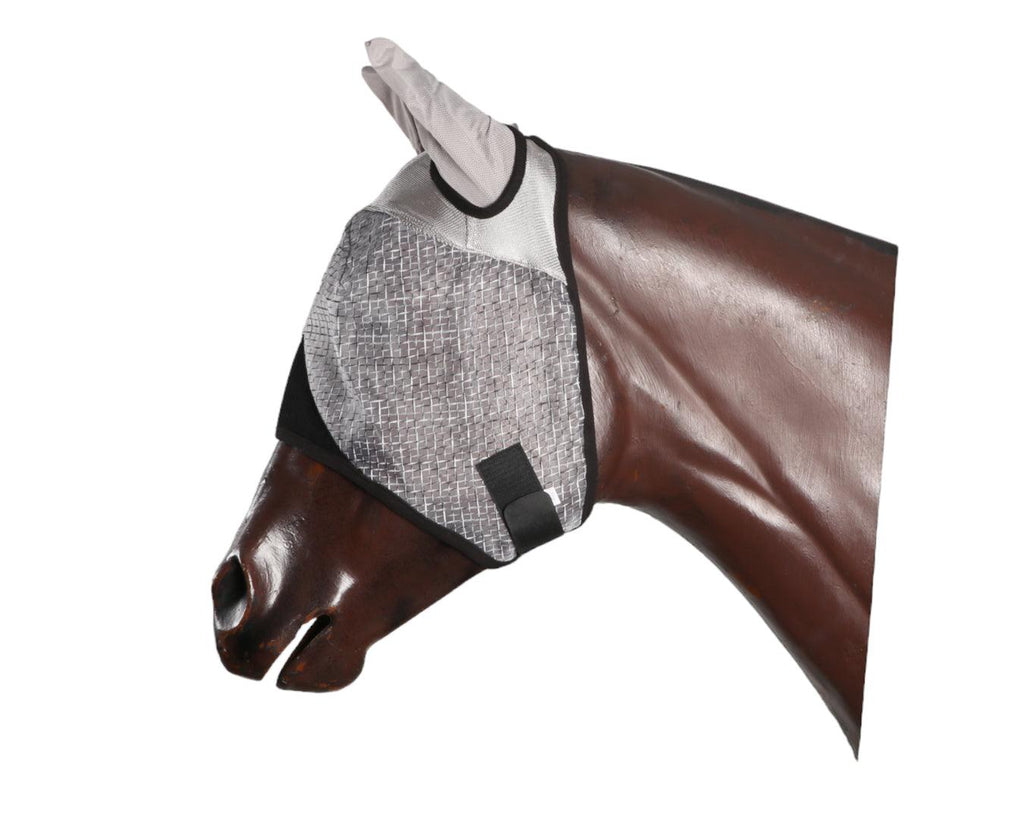 Made with ballistic material that is extremely strong, yet gentle on the horses face and ears. Protects against flies and other biting insects, with additional protection for the horse's ears. Darts keep the mask off the horse's eyes with no obstruction of vision. Elastic hook and loop closure eliminates sizing guess work.