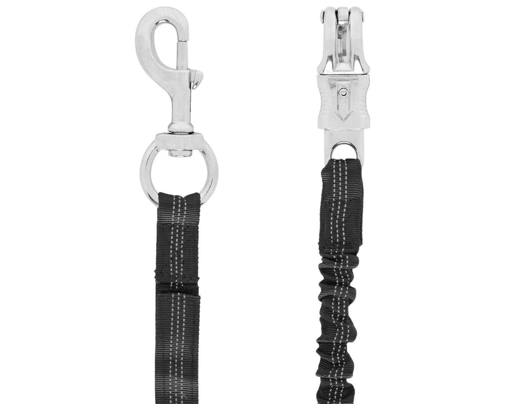 Discover the ultimate in equine security with our Bungee Breakaway Trailer Tie. This innovative 75cm tie features shock-absorbing technology to reduce sudden jolts, keeping your horse calm during transport or grooming. With a bull snap hook on one end and a panic snap on the other, it ensures quick release in emergencies. Perfect for horse floats, stables, yards, and wash bays, this versatile tie combines durability with safety. Its compact size offers secure tethering without compromising comfort. Elevate your horse's safety and your peace of mind today.