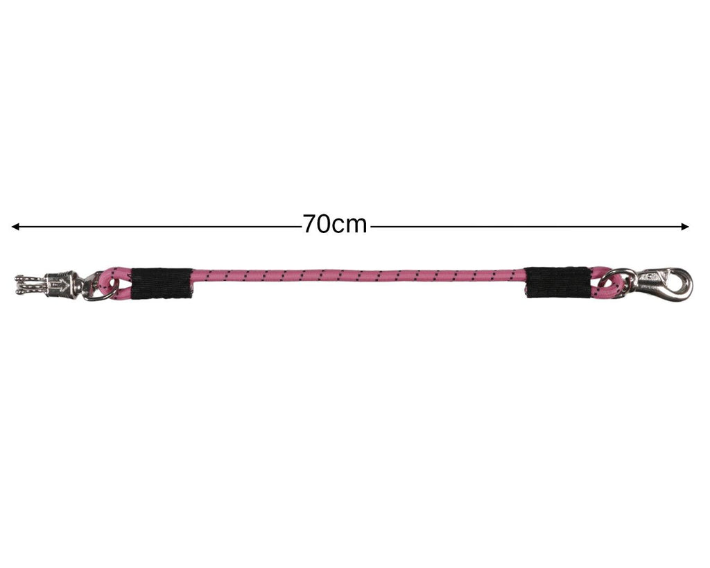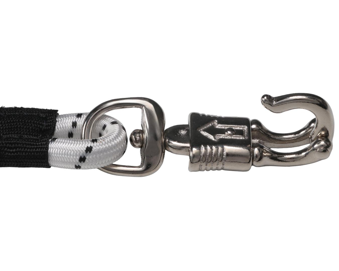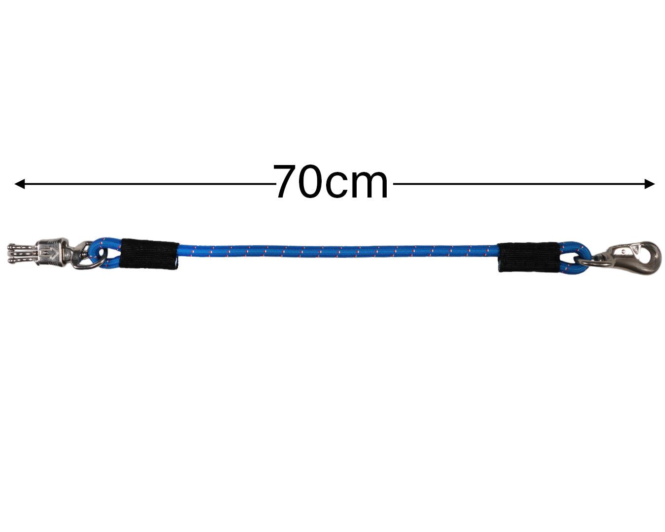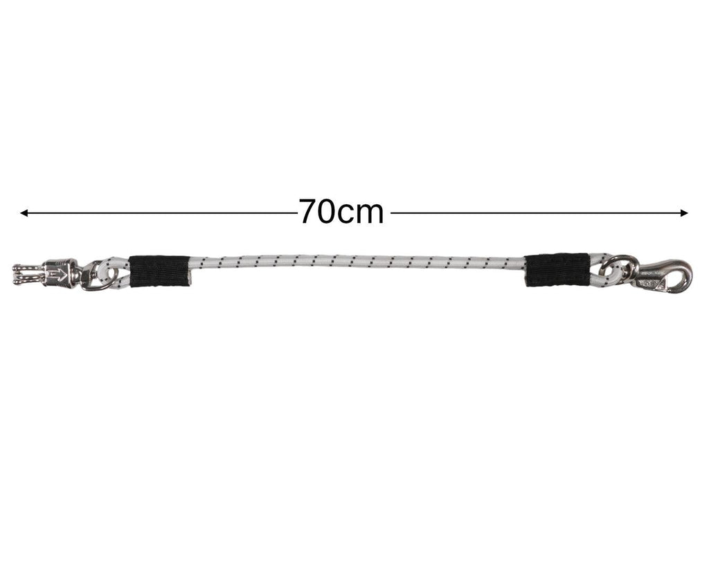 Enhance your horse's safety with our Bungee Trailer Tie, available in two convenient lengths: 50cm and 70cm. Designed to absorb sudden shocks, this tie ensures your horse remains calm when tied up or traveling. Featuring a durable bull snap hook on one end and a panic snap on the other, it allows for quick release in emergencies. Perfect for use in trailers, stables, or yards, this versatile tie provides reliable security without compromising comfort. Invest in peace of mind for you and your horse today. Shop now for the ultimate in equine safety!