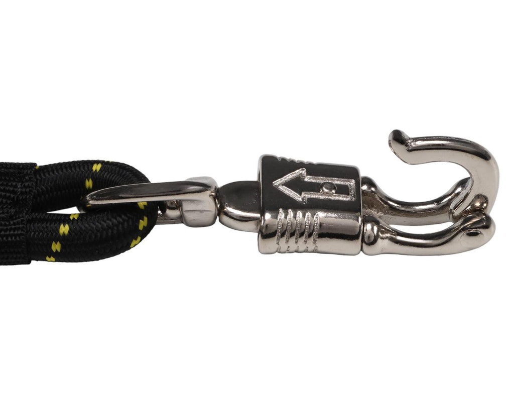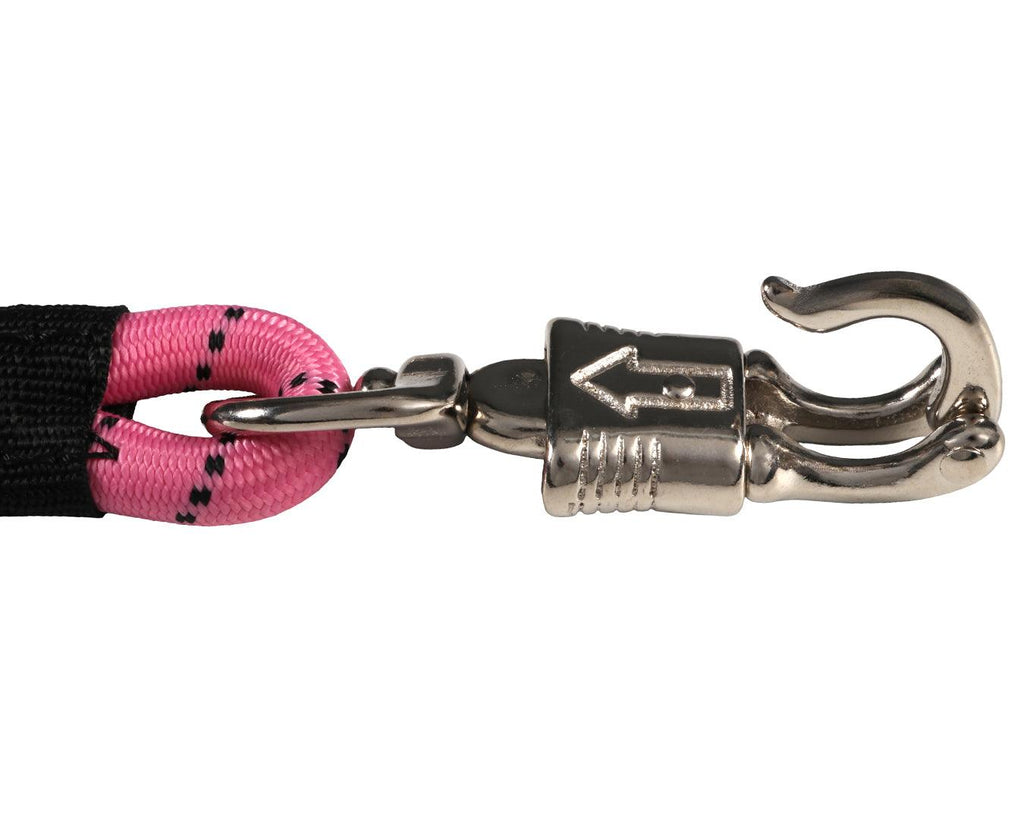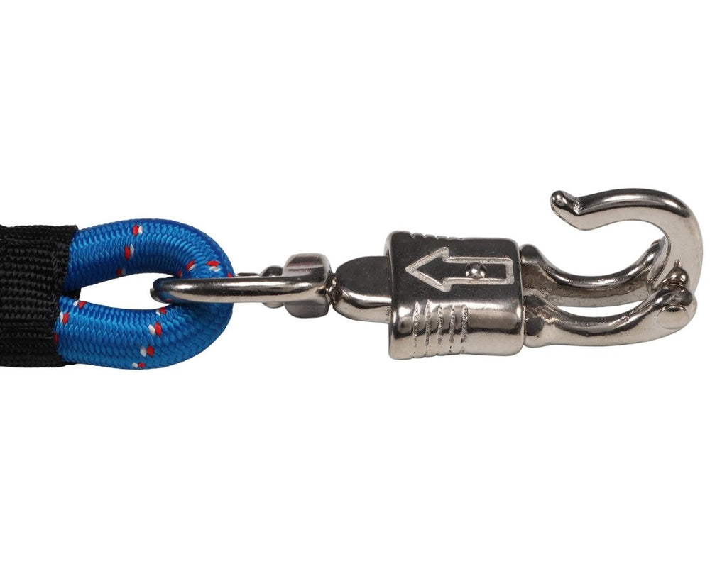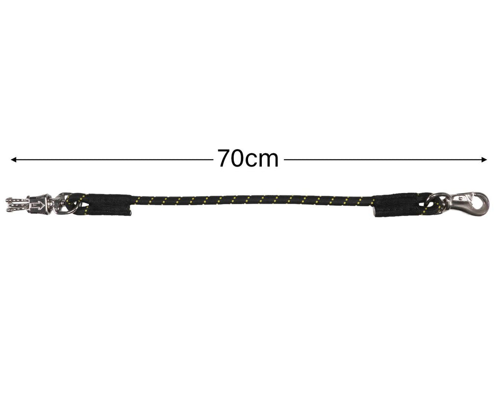 Enhance your horse's safety with our Bungee Trailer Tie, available in two convenient lengths: 50cm and 70cm. Designed to absorb sudden shocks, this tie ensures your horse remains calm when tied up or traveling. Featuring a durable bull snap hook on one end and a panic snap on the other, it allows for quick release in emergencies. Perfect for use in trailers, stables, or yards, this versatile tie provides reliable security without compromising comfort. Invest in peace of mind for you and your horse today. Shop now for the ultimate in equine safety!