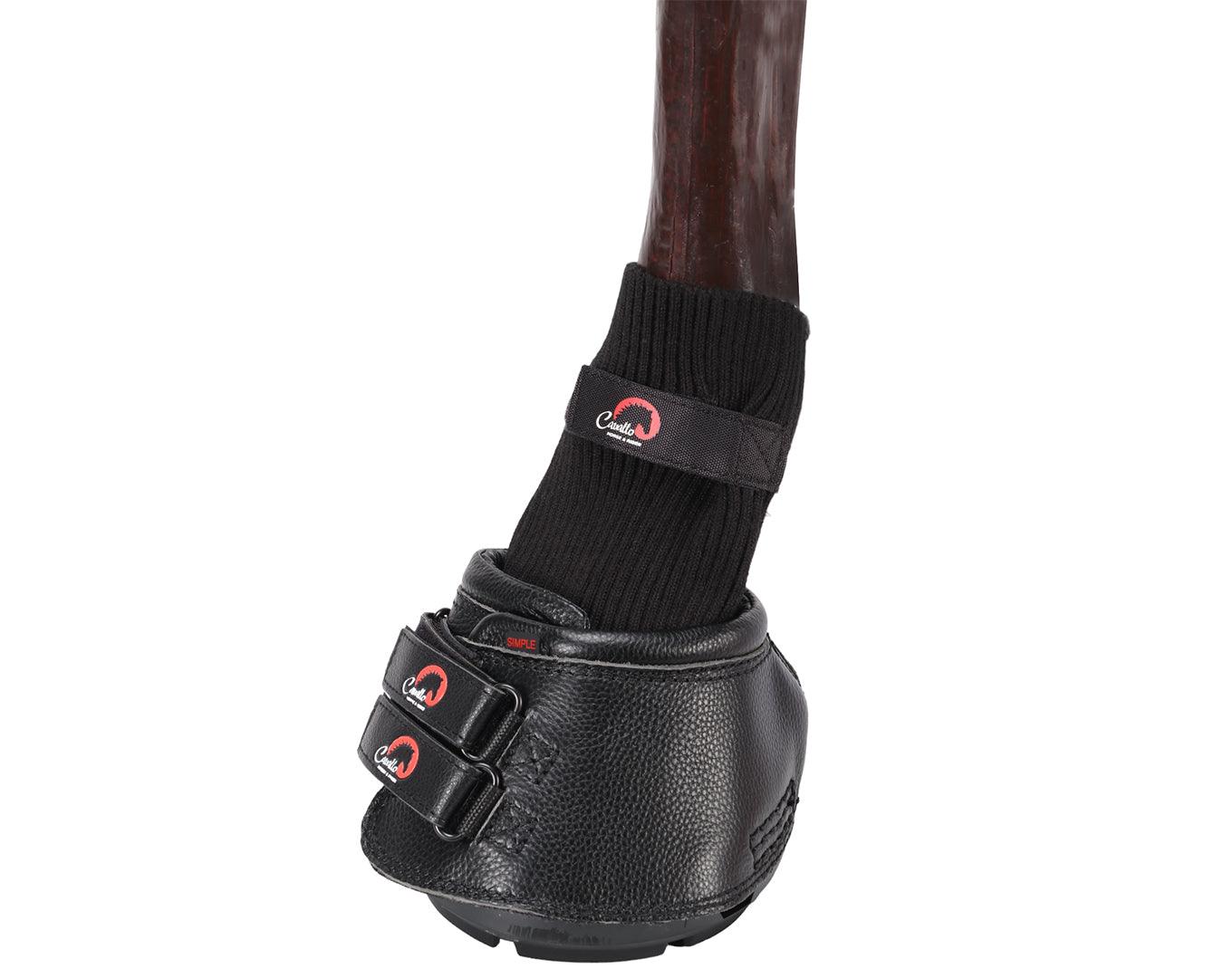 - Pull the sleeve over the hoof and onto your horse's pastern, fasten the strap gently.