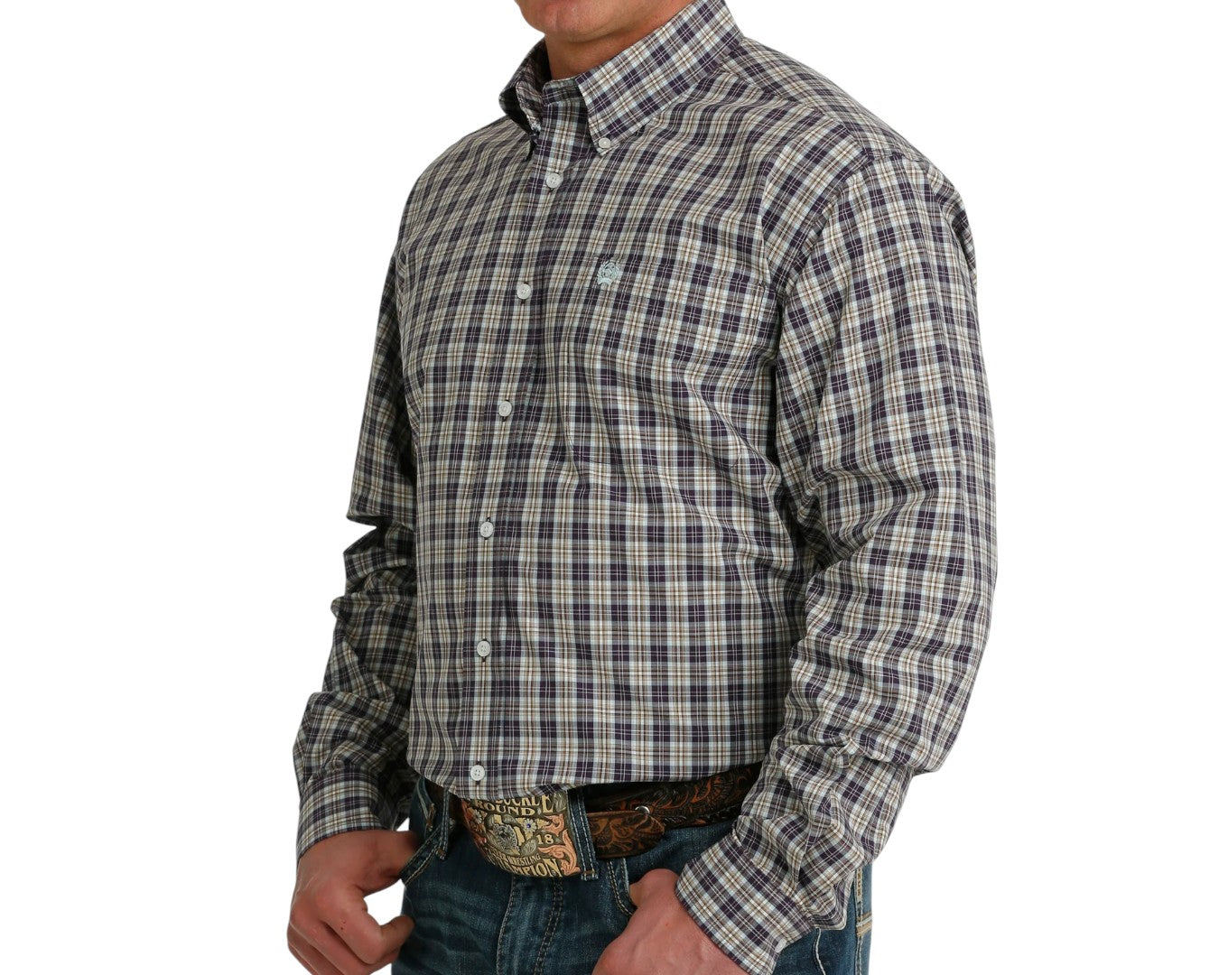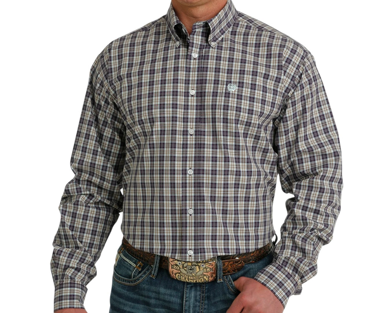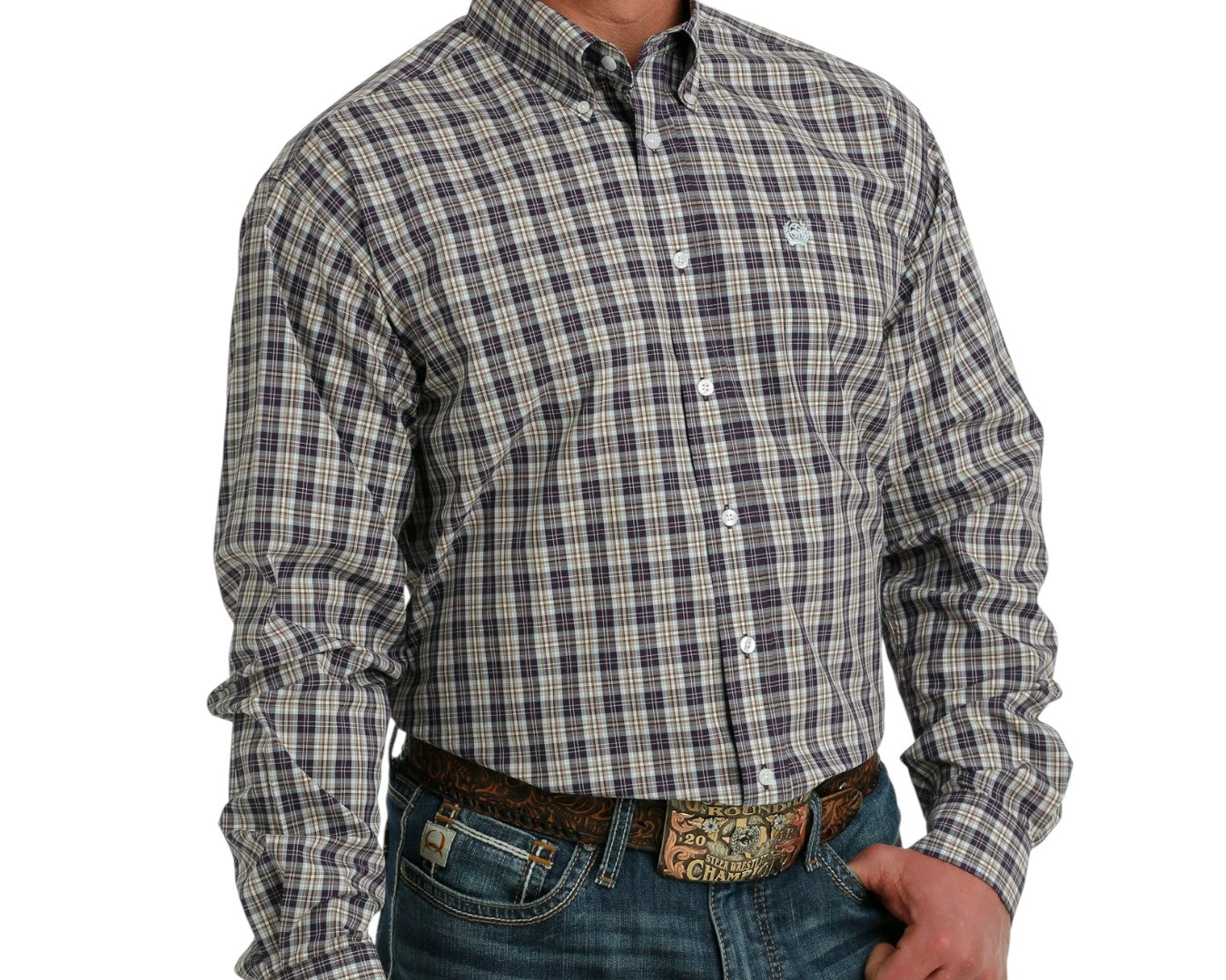 Discover rugged comfort with the Cinch Men's Purple/Cream Plaid Long Sleeve Shirt, expertly crafted from 100% cotton for softness and breathability. The small purple, white, and tan plaid pattern gives it a timeless country style perfect for work or weekends. Featuring a generous classic fit, straight back yoke with centre pleat, and a single chest pocket, this shirt blends durability with everyday comfort. Ideal for layering or wearing on its own, it’s designed for the modern bloke who values both function and style.