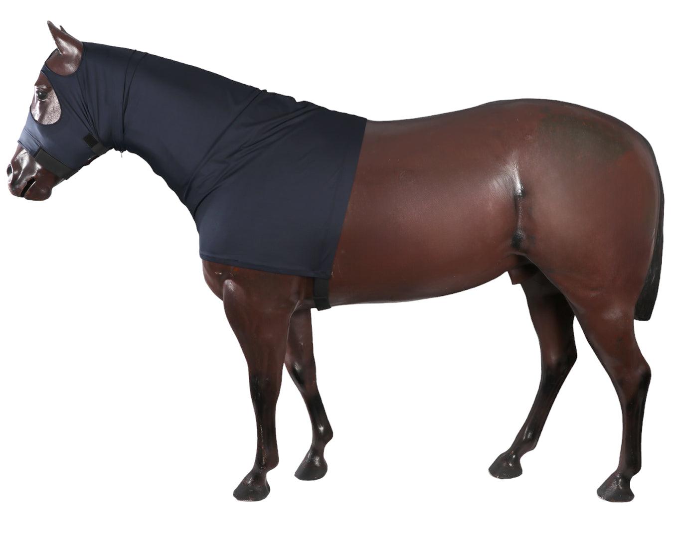 Elevate your horse's comfort and style with the Conrad Premium Lycra Full Hood in a sleek navy hue. This top-tier horse hood, crafted by Conrad, features a convenient zip under the chin and two Velcro closures for a secure and customized fit. Enjoy optimal protection and ease of use as you enhance your equine companion's well-being with this premium lycra hood.