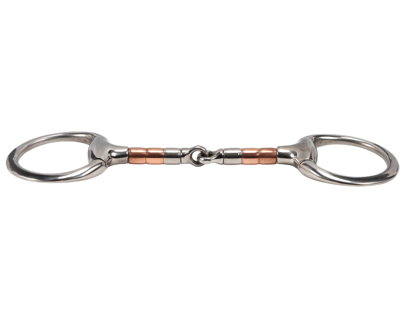 Eggbutt Snaffle Bit w/Copper & SS Rollers & Flat Rings