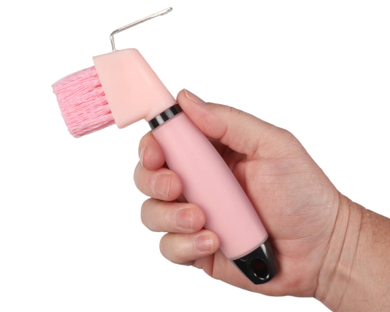 - Soft touch gel grip handle with metal pick and stiff colour matching brush bristles.