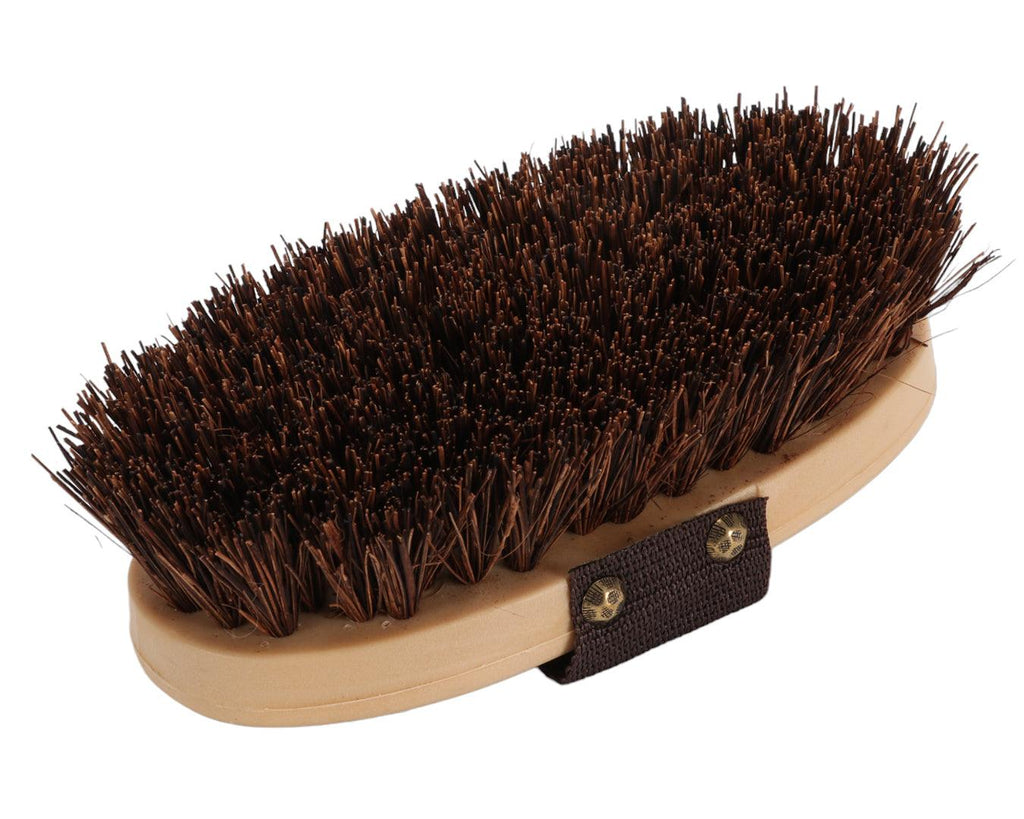 - Firm Palmyra bristles help make removing dried mud from the horse easier .