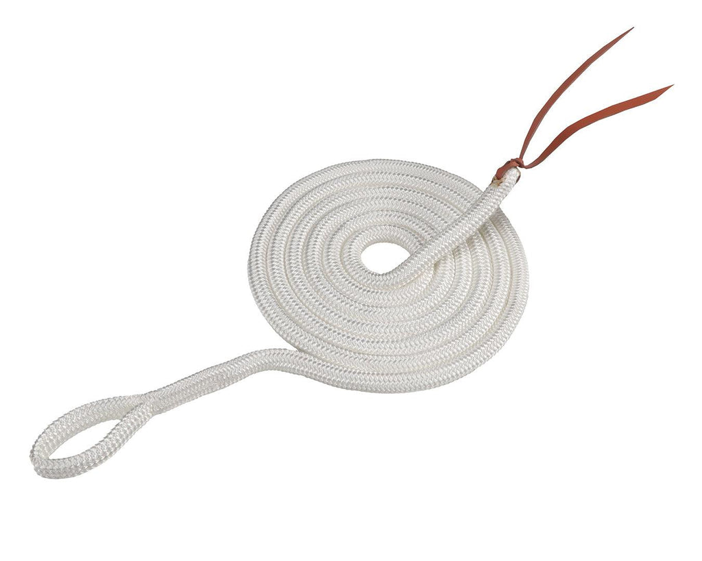 Elevate your horsemanship skills with our premium 23' Horsemanship Training Lead, designed for versatile use and superior control. Crafted from durable 16mm braided yacht rope, this lead offers the perfect balance of toughness and sensitivity. The rope's unique construction ensures it's strong enough for multiple applications while maintaining a "live feel" for enhanced communication between handler and horse. At 23 feet (7 meters) long, it provides ample length for various training exercises and groundwork. The absence of a snaphook allows for customizable attachment options and reduces weight, making it ideal for advanced handlers. Whether you're working on lunging, desensitization, or general training, this lead delivers the performance you need. Upgrade your training toolkit—shop now for this essential horsemanship tool!