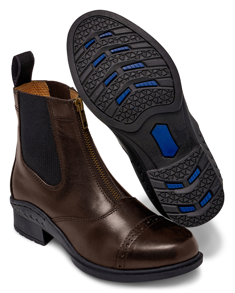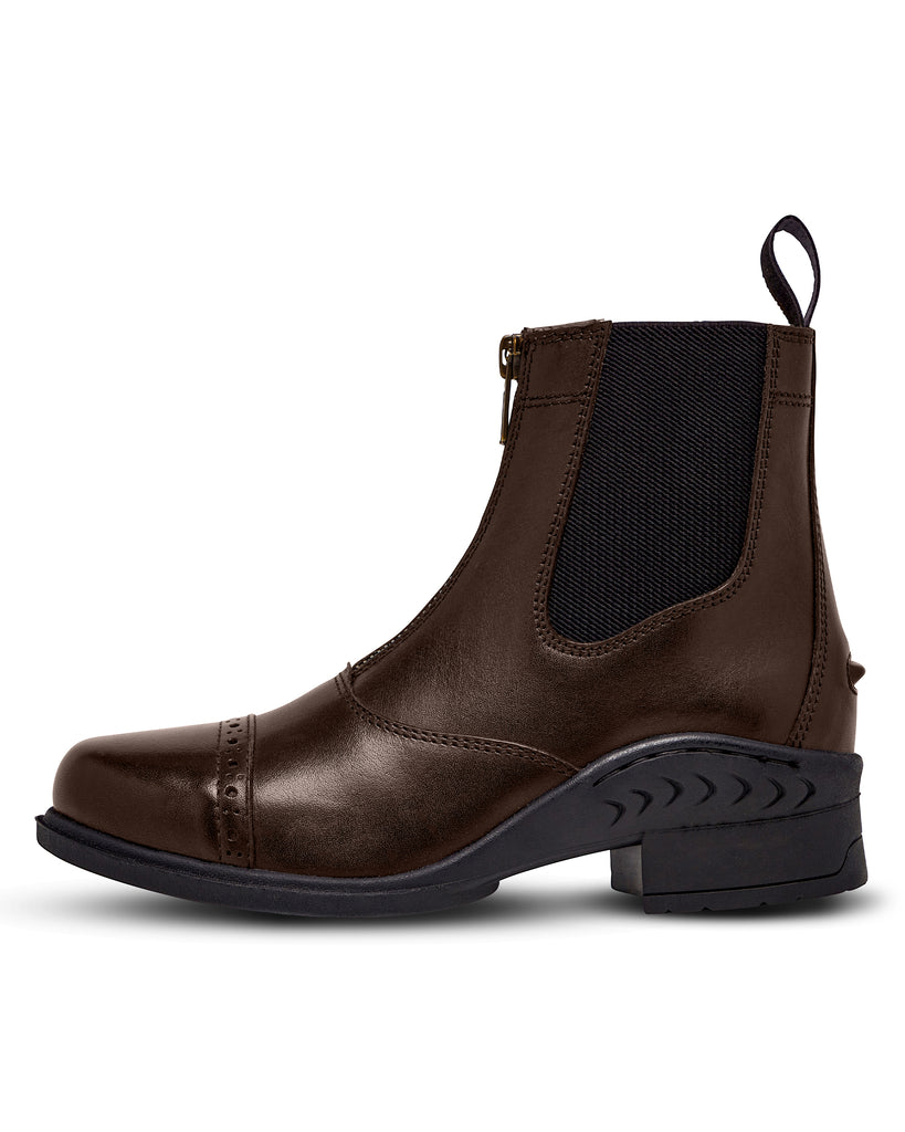 Elevate your riding experience with the Huntington Ladies Leather Zipper Boot, a perfect blend of style and functionality for the discerning equestrian. Crafted from full-grain supple leather, these boots mould perfectly to your foot and ankle, providing exceptional support and comfort. The easy-fit zip front and elasticated sides ensure a snug fit, while the contoured leather shaping offers superior ankle support. With elegant punched leather detailing and reinforced stitching, these boots seamlessly combine durability with sophistication. Available in classic black and brown, they're the ideal choice for riders of all levels seeking quality Australian craftsmanship.