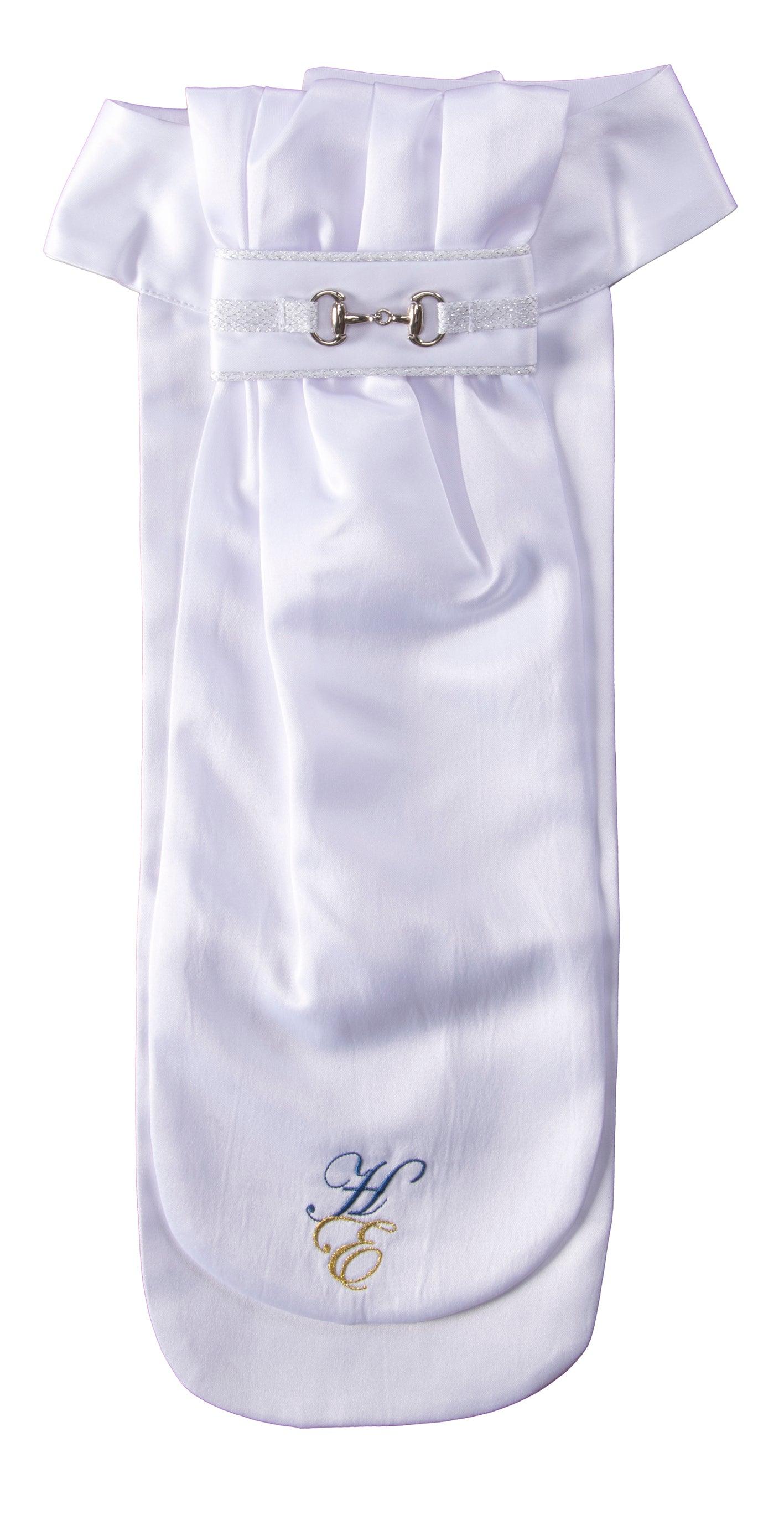 The timeless design of this stock tie complements any show jacket. Classic and fresh-looking with pleated fabric and a snaffle bit feature, the long tie flap will fit most jacket styles. It’s easy to pop on and off too with a Velcro fastening at the neck.