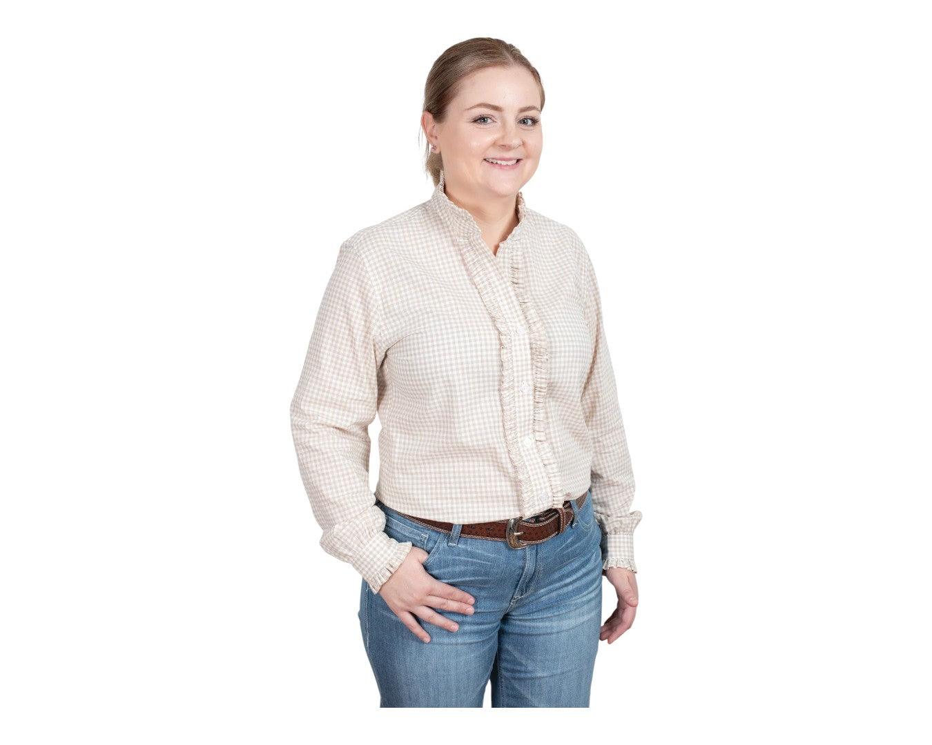 Elevate your wardrobe with the Just Country Women's Abbey Frills Full Button Workshirt, a perfect blend of style and practicality. This shirt features a charming frill collar and placket, adding a touch of femininity to your work attire. Made from lightweight 100% cotton, it ensures comfort and breathability throughout the day. The full button front allows for easy wear, while the long tails keep the shirt neatly tucked in. With double pockets for added convenience and side pleats for ease of movement, this workshirt is designed for women who appreciate both fashion and function. Available in various colours and patterns, the Abbey Frills Workshirt is your go-to choice for versatile country style. Shop now and refresh your collection!