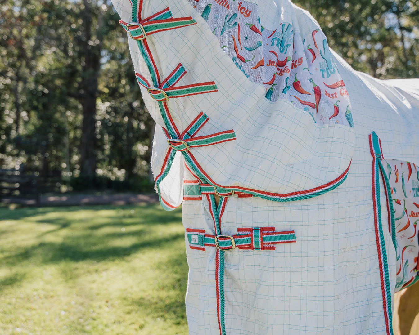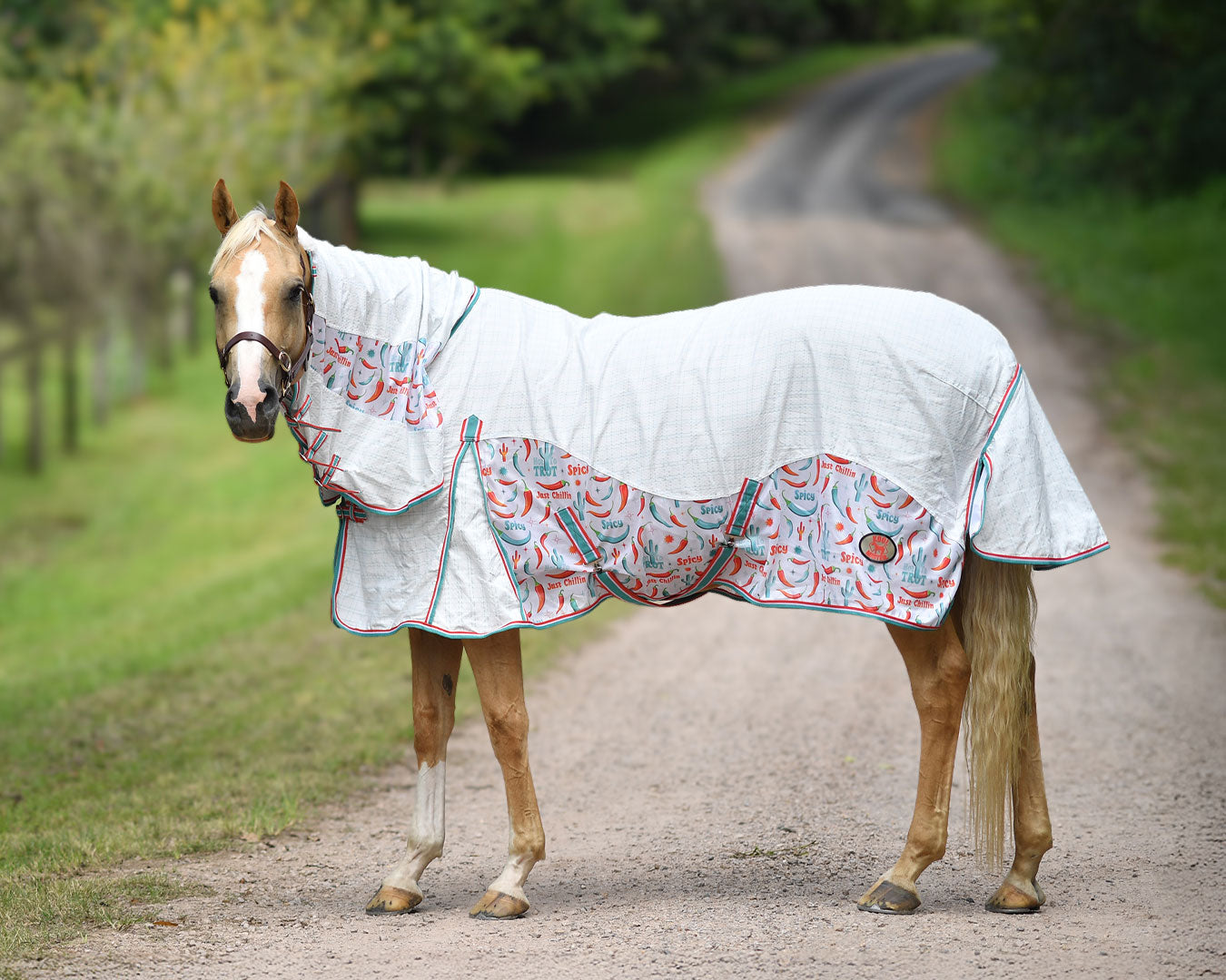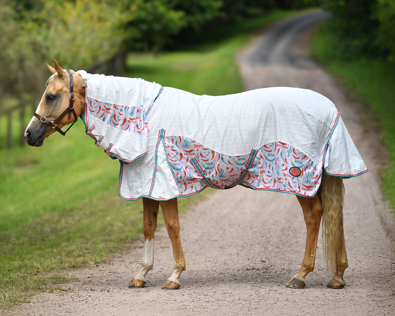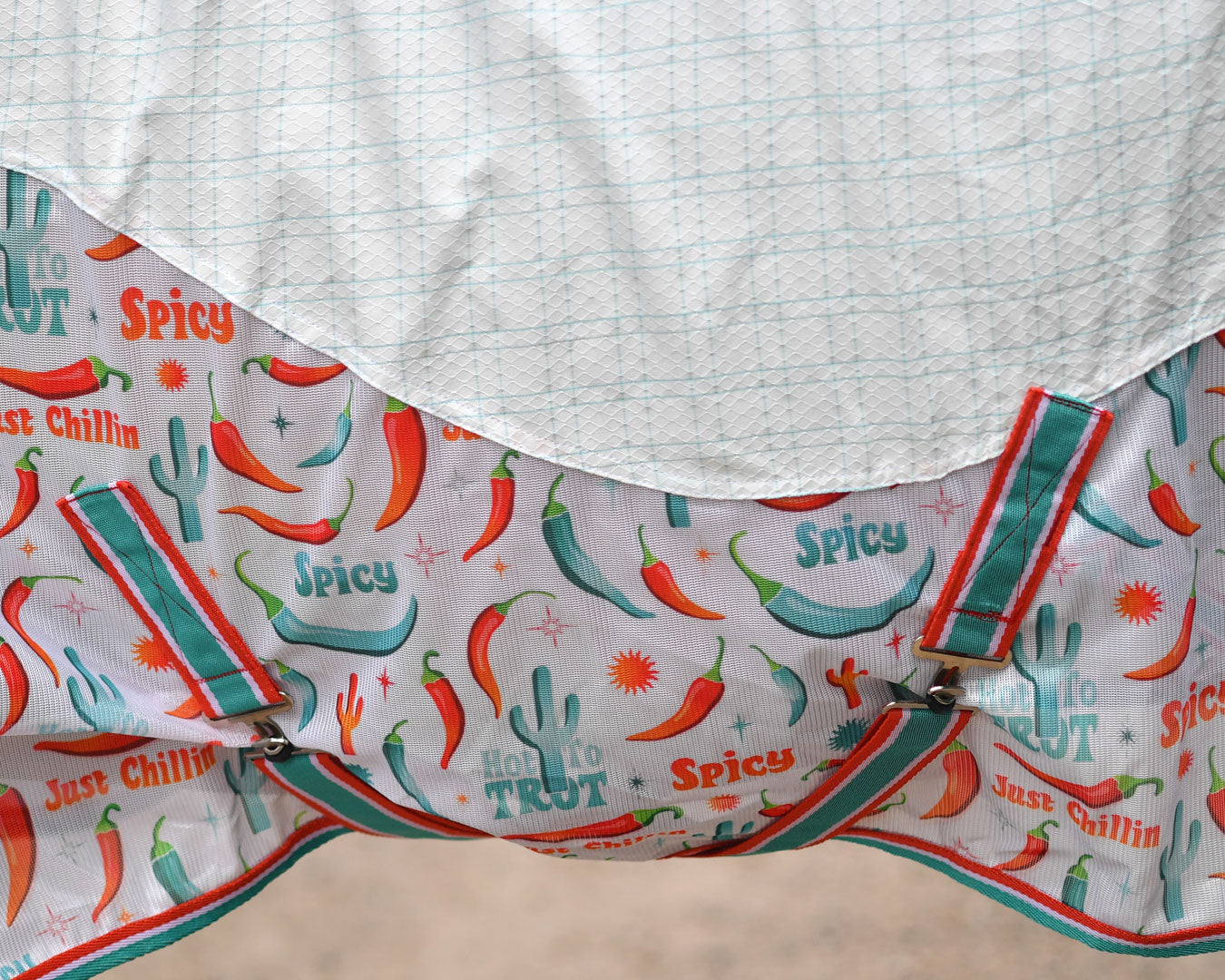 The Kool Master Hybrid Tear-Stop Combo is a versatile horse rug designed especially for warmer weather. It combines durability and breathability by using diamond weave ripstop material paired with printed air mesh in strategic areas to optimise airflow. This combo offers a secure and customisable fit featuring three neck buckles, twin chest buckles, dual surcingles, a generous shoulder gusset for freedom of movement, adjustable/removable leg straps, and a large tail flap for extra protection.