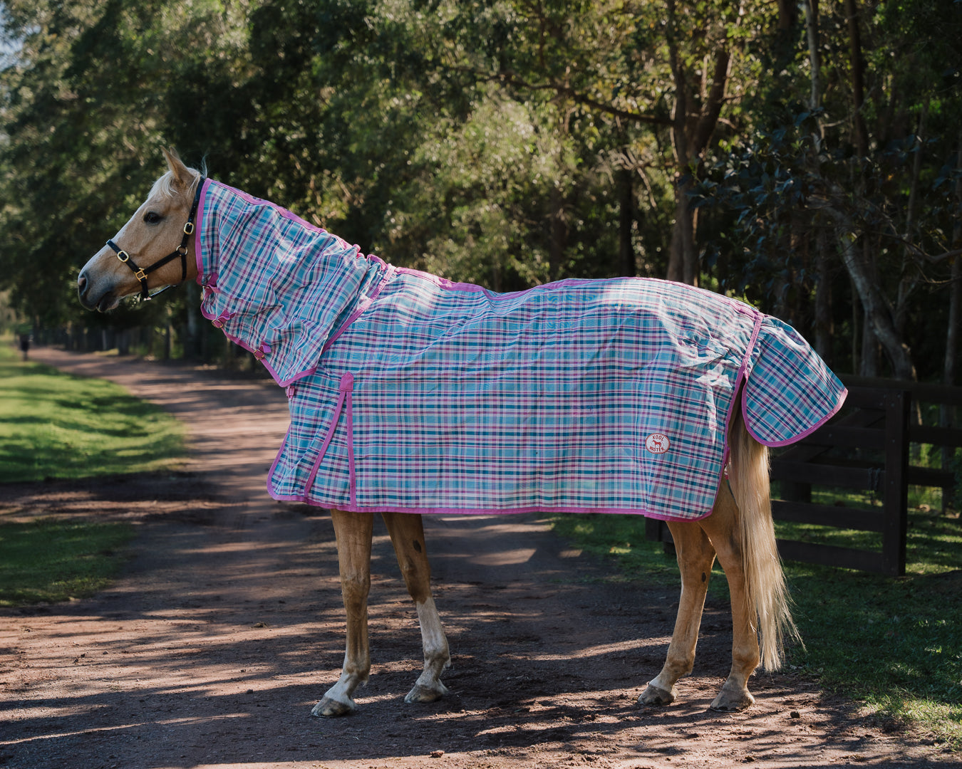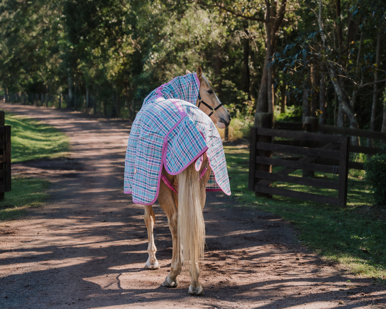 Kool Master PVC Shade Mesh Horse Rug Combo - Ice Blue/Pink