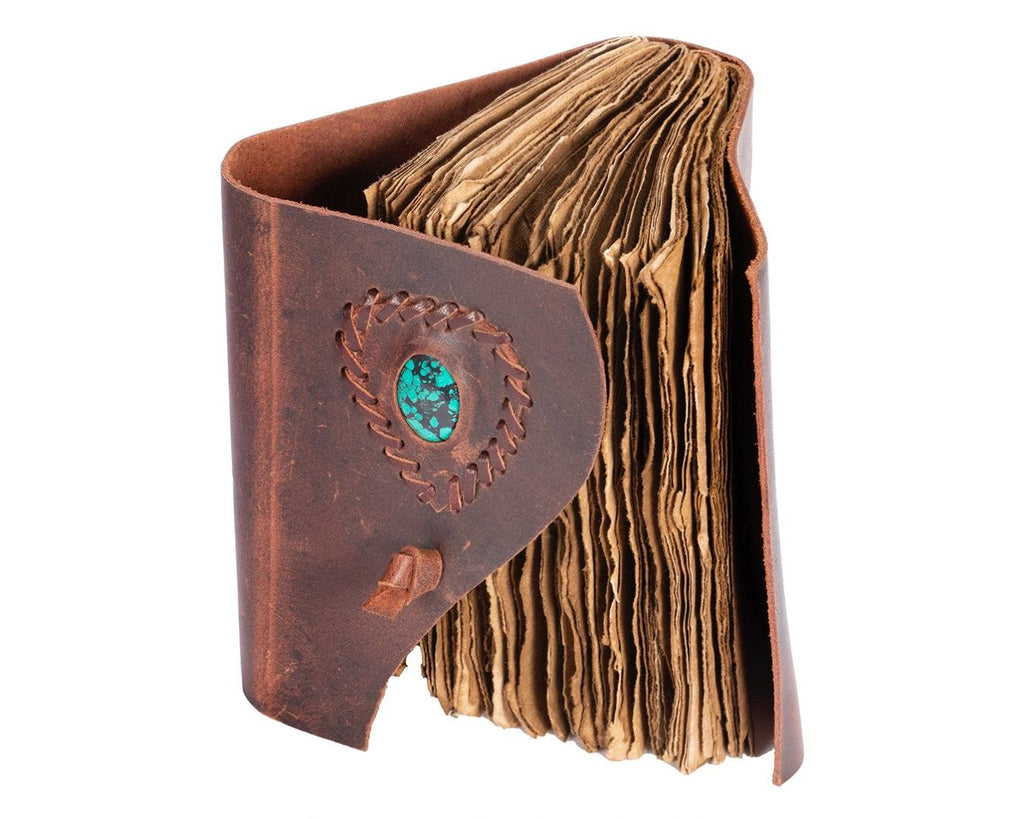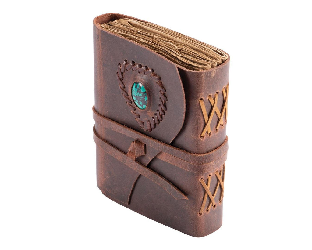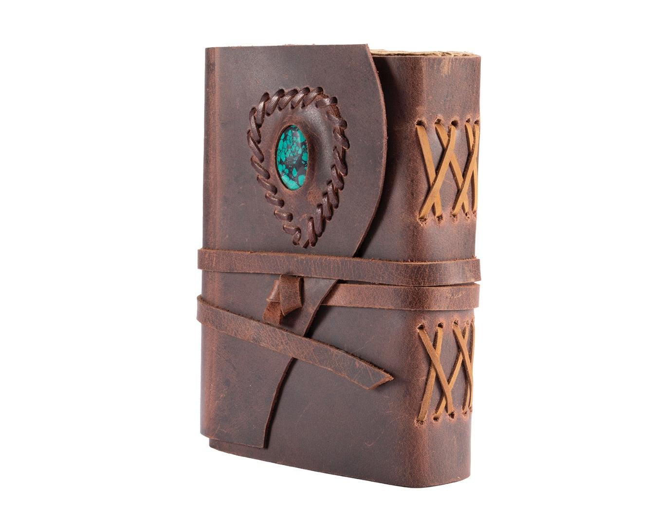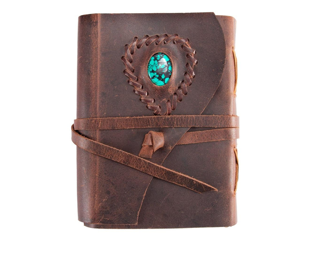 Leather Bound Journal - Brown With Turquoise Stone