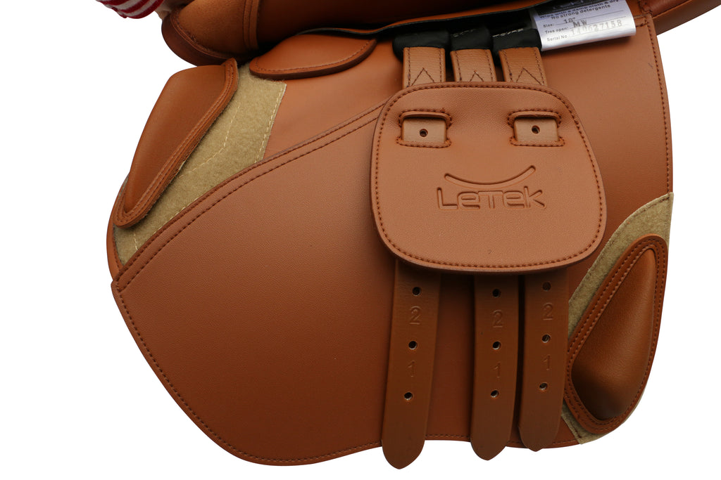 Experience the perfect combination of luxury and practicality with the LeTek Jumping Saddle. Crafted with a traditional leather upper for softness and a synthetic Quik Clean underside for easy maintenance, this saddle is designed for tall riders with its +5cm forward cut flap. It promotes a comfortable, close-contact jumping position, enhancing your performance in the ring. Available in classic Black, Brown, and Tobacco colours, the LeTek saddle not only looks great but also adapts to your needs with Tekna's innovative adjustable gullet system. Elevate your jumping experience—shop the LeTek Jumping Saddle today!