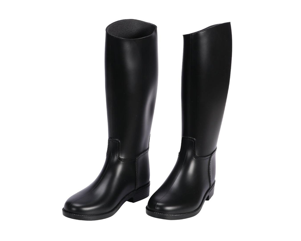 Low maintenance, these Meduse Adults Long Riding Boots in black with a plain coloured sole, and are the perfect pair for rainy days or muddy conditions around the stables.