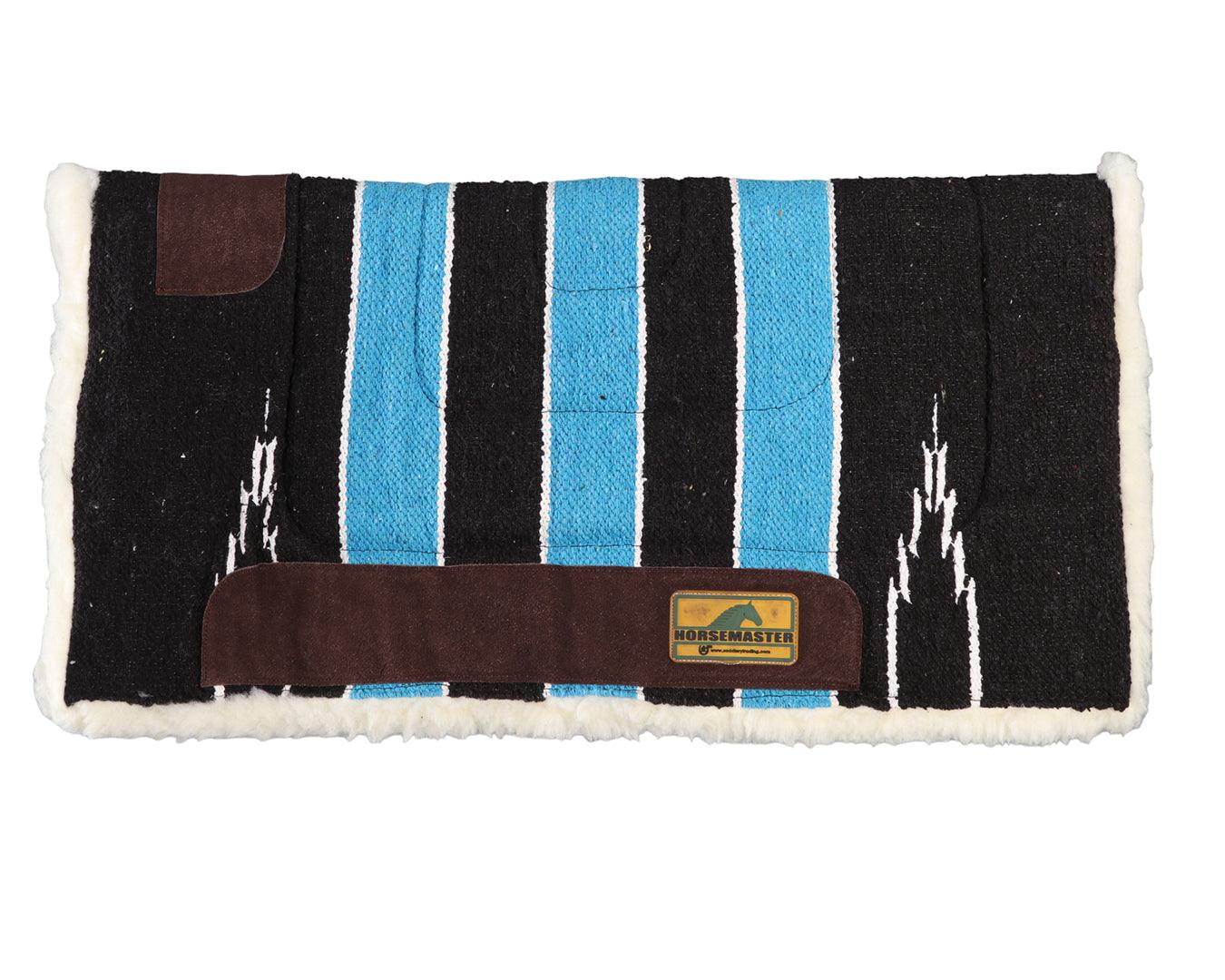 Hospital-quality polyester pile lined to the underside of the wool Navajo-style saddle blanket.