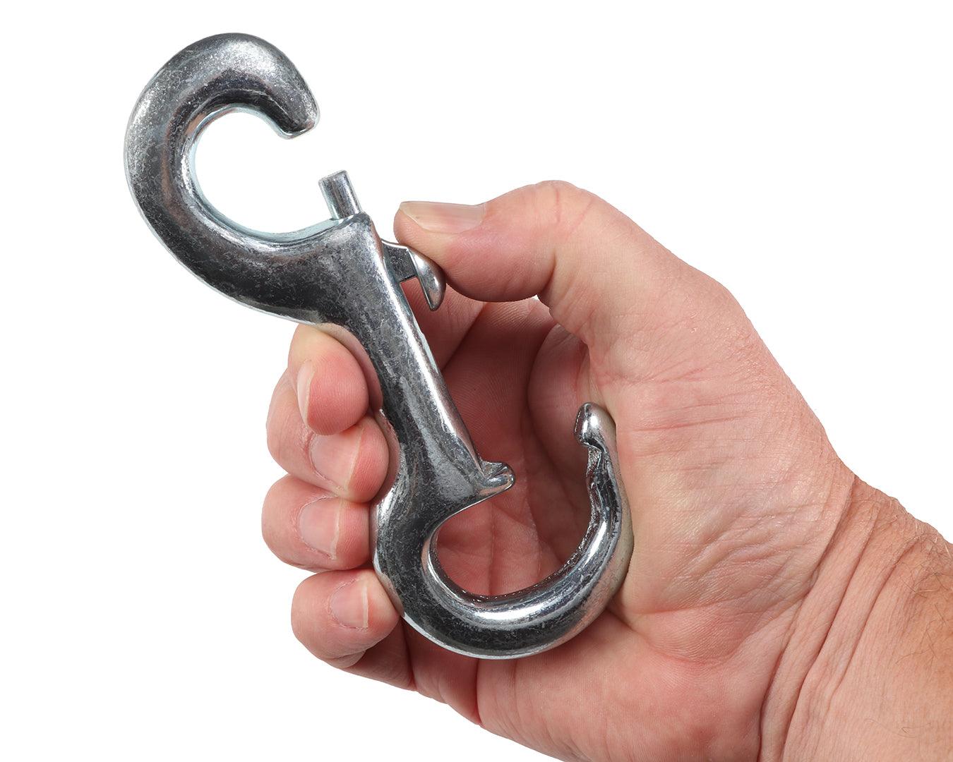 - Heavy duty snap with open end which can be hammered down to repair lead ropes.