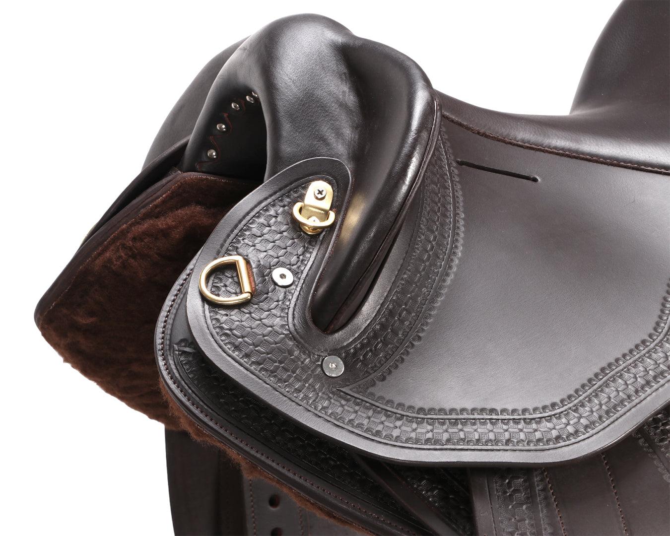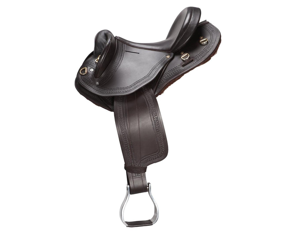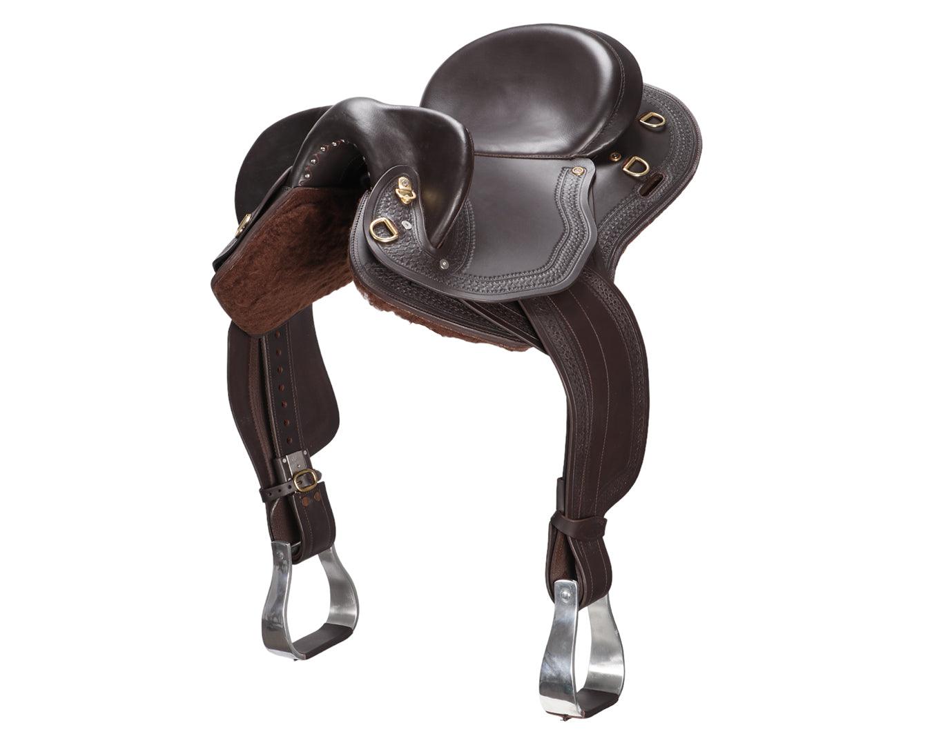 The Ord River Swinging Fender Tooled Saddle with Adjustable Gullet is a premium, carefully crafted saddle designed for durability, comfort, and security. It features high-grade buffalo leather with genuine sheepskin lining on the panels to ensure the horse’s comfort. The swinging fenders come with adjustable Blevins buckles, allowing a secure and customizable fit for the rider. The saddle includes a 3-way stainless steel skirt rigging system and an interchangeable gullet system, supplied with a Medium/Wide gullet, with other sizes sold separately to accommodate various horse shapes.
