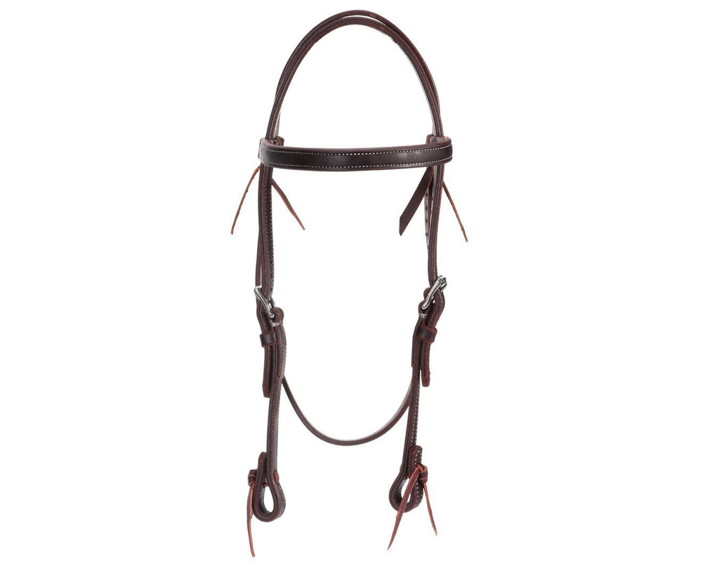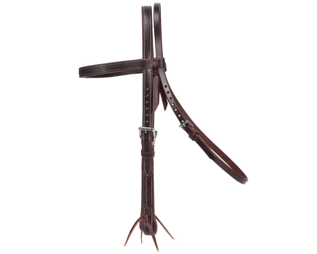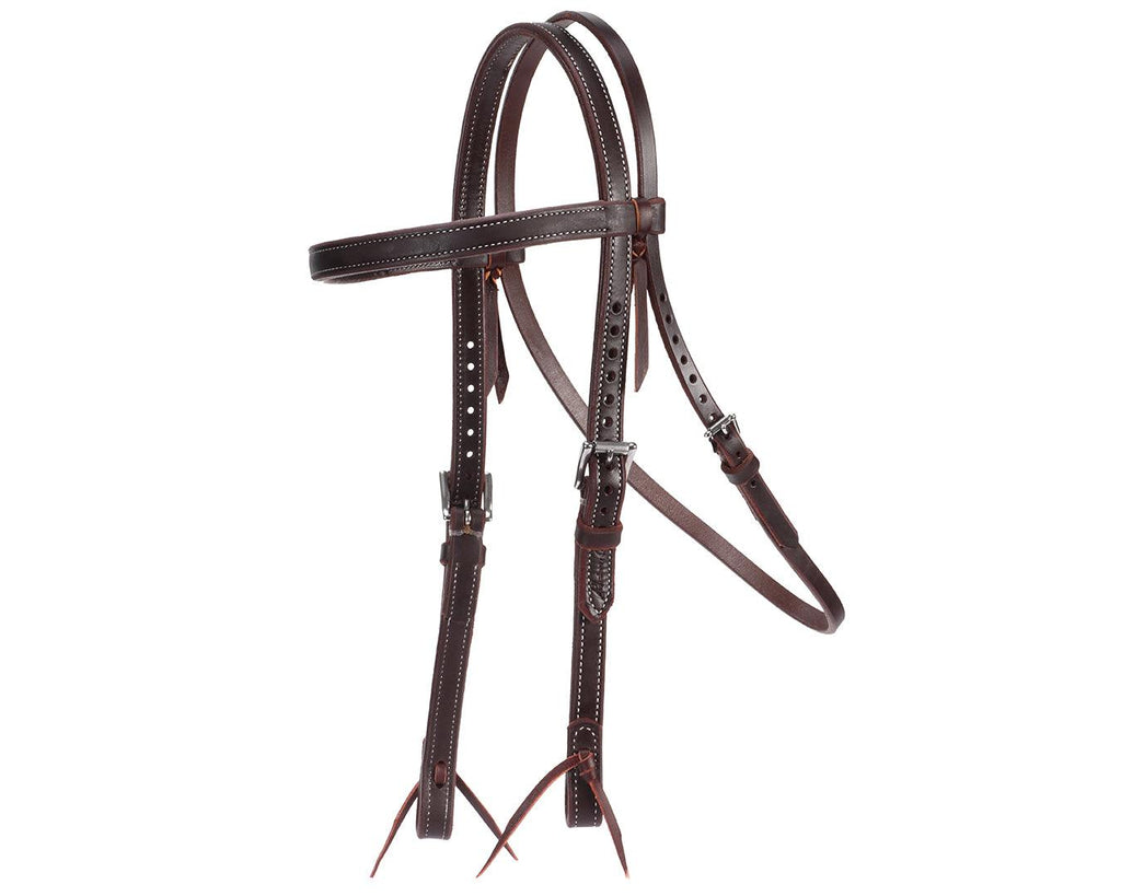 The doubled and stitched construction of the Horsemans Brow Headstall ensures its durability and longevity, making it a smart investment for any rider who demands the best. The traditional length straight cheek adds a classic touch to this timeless piece, while the 1/2" spaced holes allow for a precise fit that is tailored to your horse's unique head shape and size.