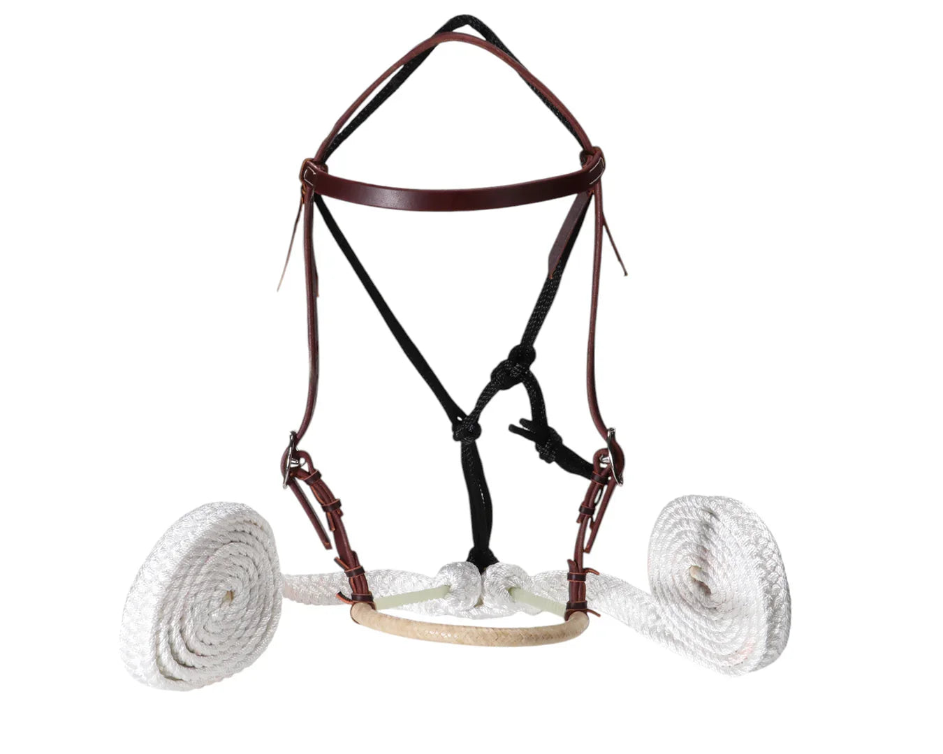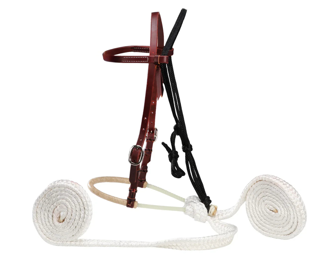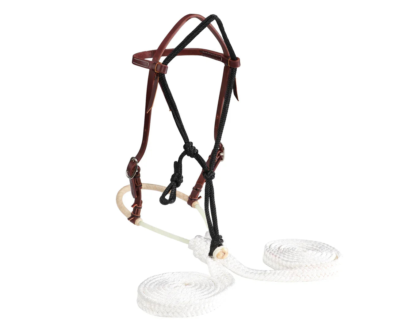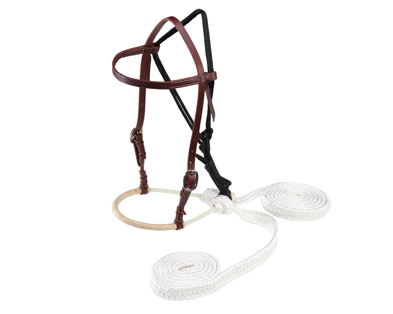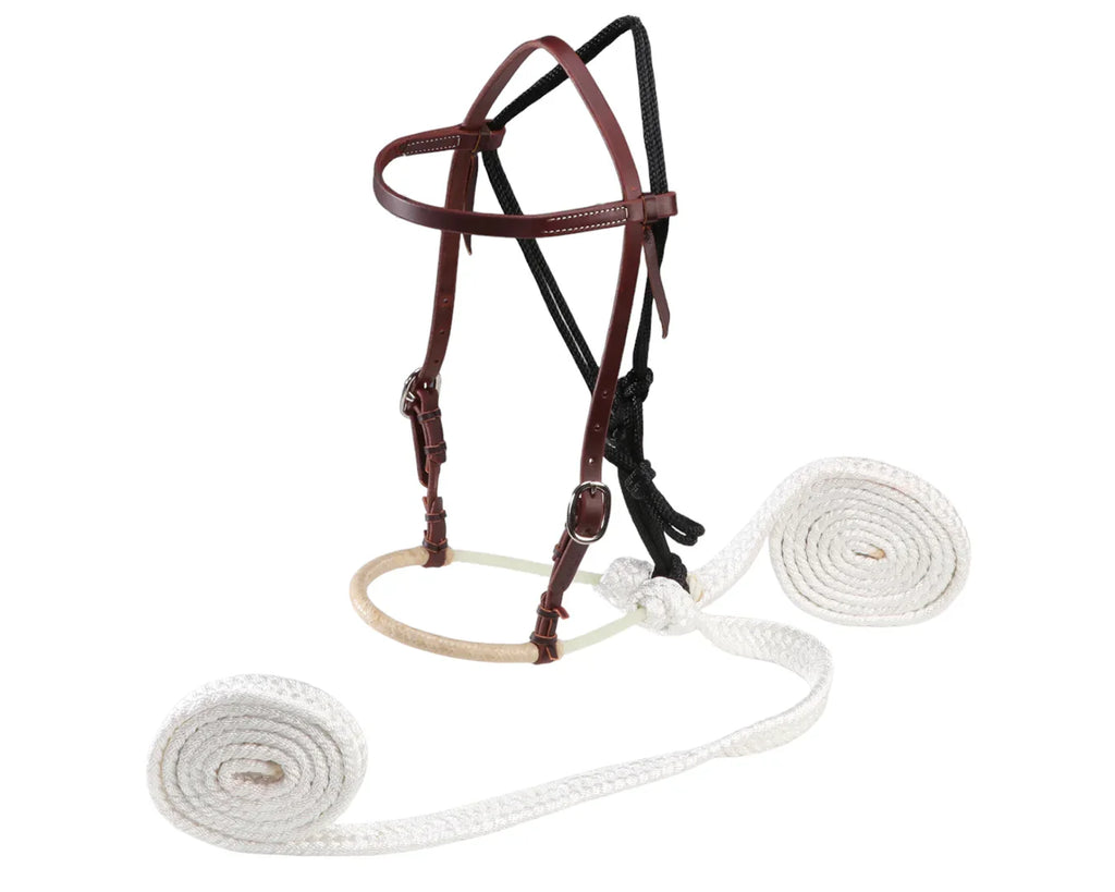 - Lariat rope nose with braided rawhide wrap for clear, comfortable control