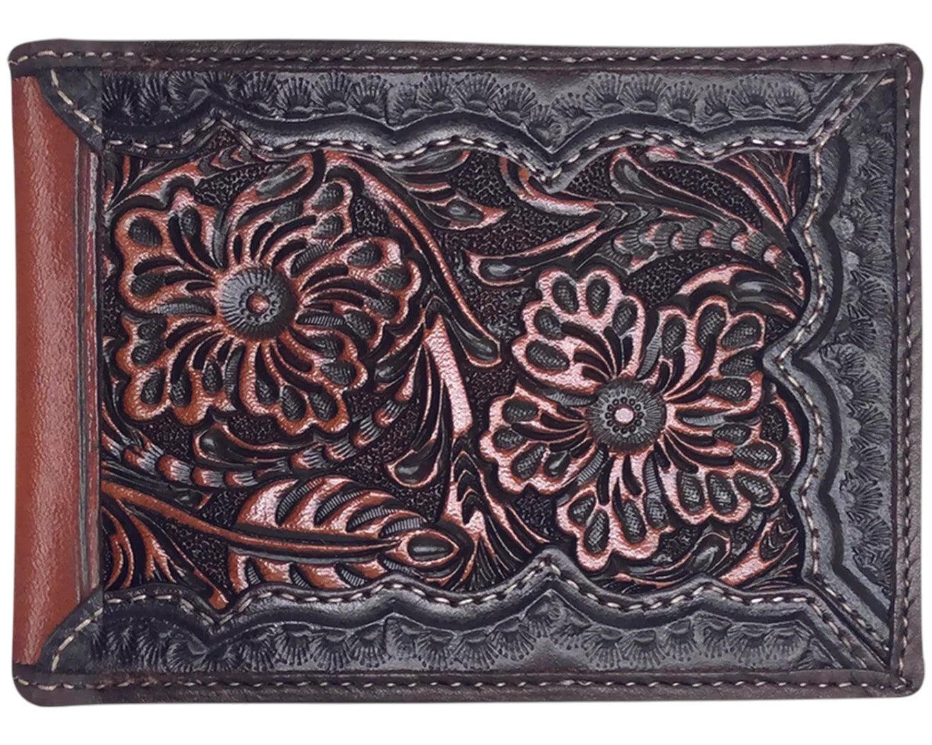 Roper Bi-Fold Tooled Leather Wallet - Dark Brown