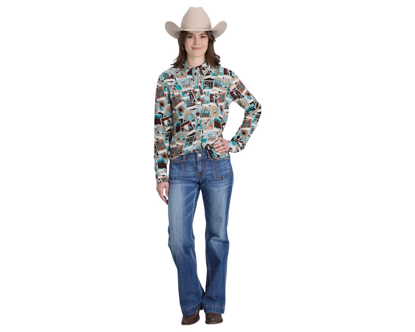 Roper Women's "Photo Collage" Rayon Printed Shirt