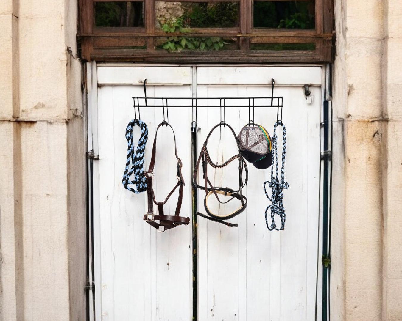 Keep your tack room tidy and organised with this practical Six Hook Tack Rack. Perfect for hanging halters, lead ropes, and other equipment, it provides ample storage space. The rack is designed to hang over any fixed surface, making it easy to install and use. Its portable design allows you to take it with you to competitions, ensuring your gear stays organised on the go.