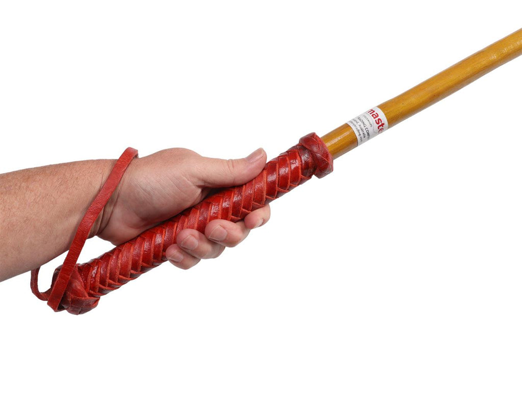 - Robust cattle cane with bound Redhide flapper and plaited handle grip with wrist loop.