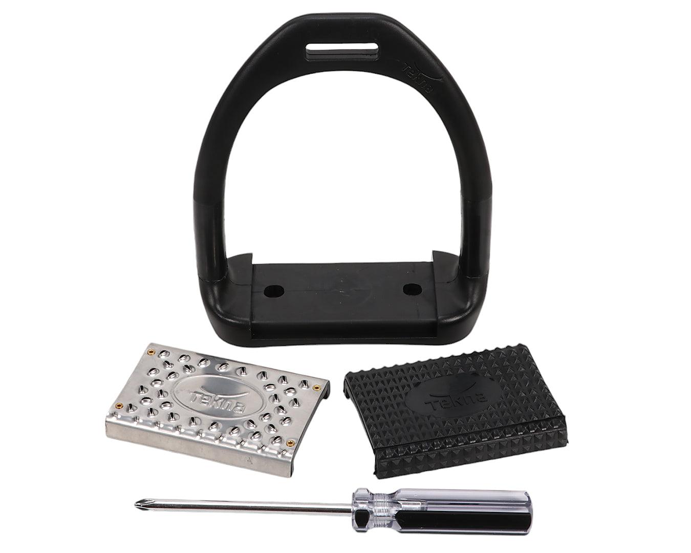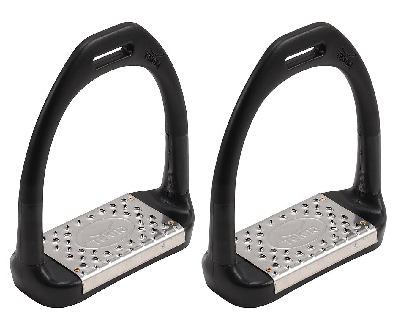 Experience unparalleled comfort and stability with Tekna Flex-Tek Stirrups. Designed with a sleek profile and flexible pad angle, these stirrups provide optimal support for your feet during rides. The 4.75" size accommodates various foot sizes, while the easily interchangeable metal or rubber pads allow for a customizable fit tailored to your preferences. Whether you're training, competing, or enjoying a leisurely ride, these stirrups combine style and functionality, making them an essential addition to your equestrian gear. Elevate your riding experience with Tekna Flex-Tek Stirrups—your feet will thank you!