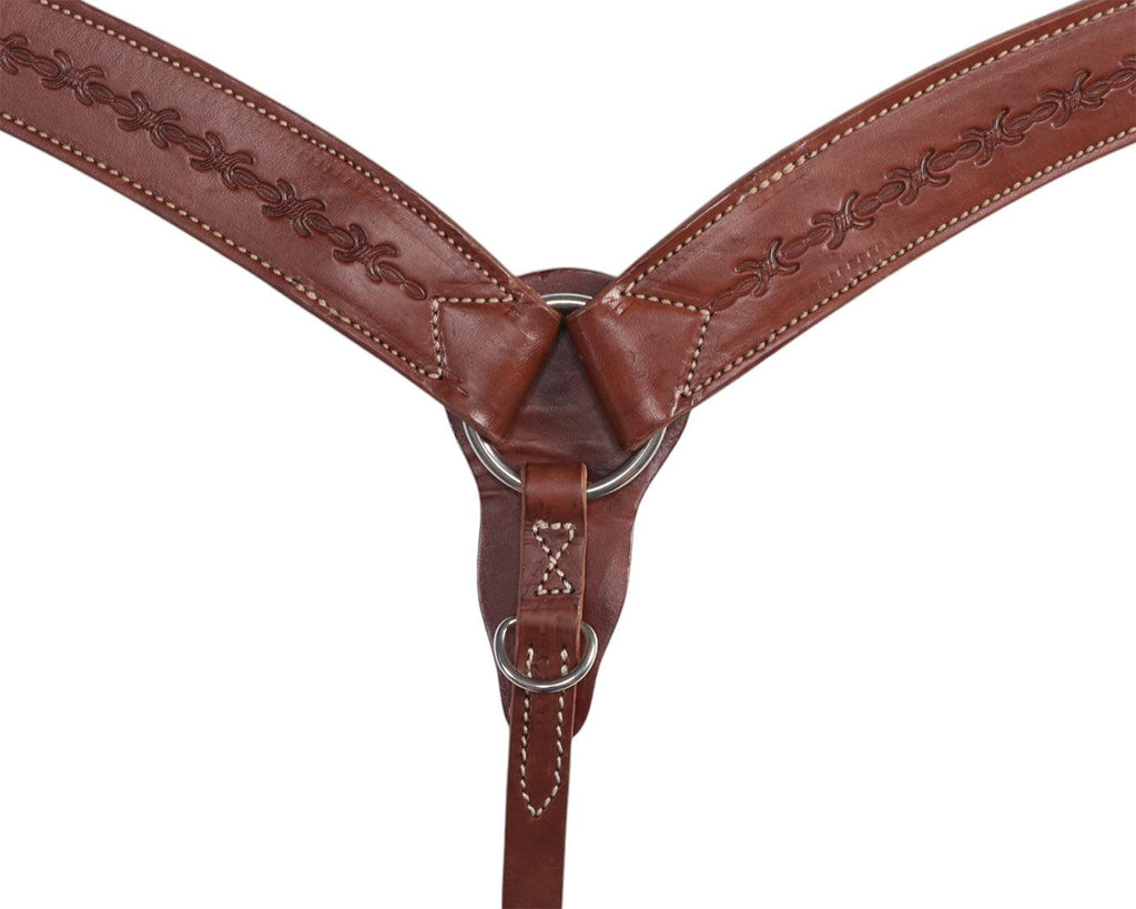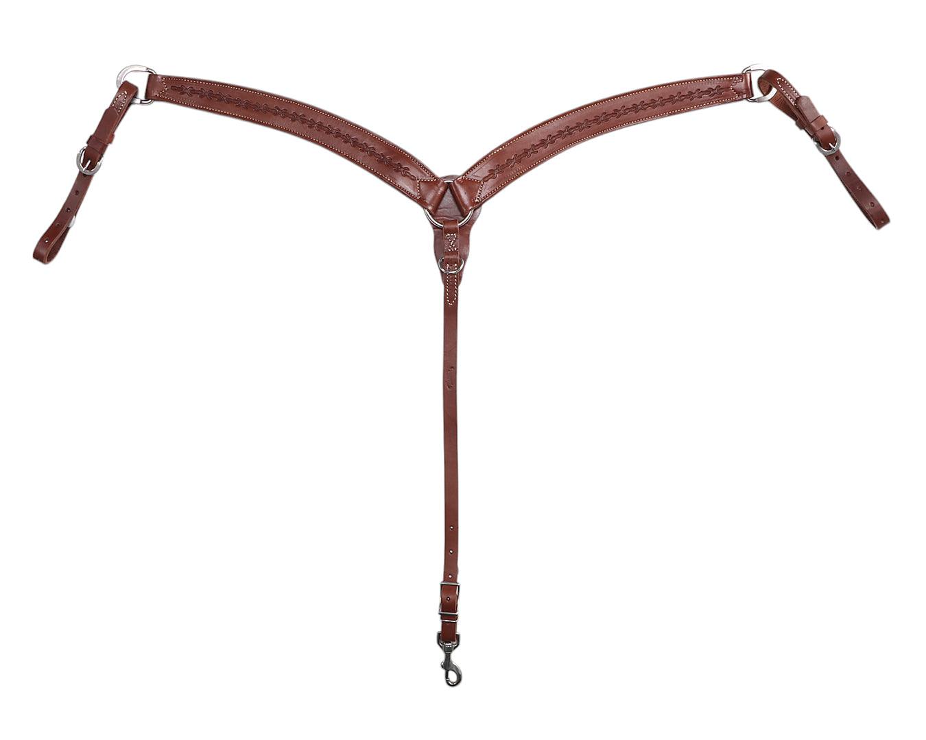 Discover the Weaver Barbed Wire Collection Breastcollar, expertly crafted for riders who appreciate quality and style. Made from premium brown skirting leather, this breastcollar features a striking, hand-stamped barbed wire pattern that adds a touch of elegance to your riding gear. The durable stainless-steel hardware ensures reliability and longevity, making it perfect for both professional and recreational use. Its classic design offers versatility, allowing it to seamlessly complement various saddles and tack setups. Whether you're heading out for a casual ride or a competitive event, this breastcollar is an essential addition to your collection. Elevate your riding experience today! Shop now and enjoy the perfect blend of style and functionality.