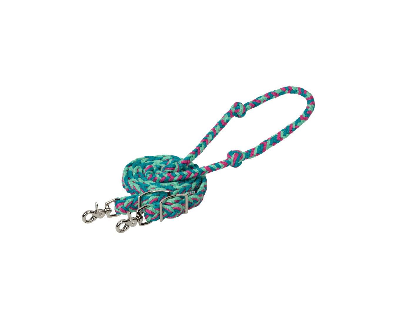 These flat barrel reins made of eco-friendly organic bamboo are sturdy but feel soft and luxurious in the hands. The reins are moisture-wicking, keeping your hands dry for good grip. They come in a variety of colours and feature conway buckles and scissor snaps.