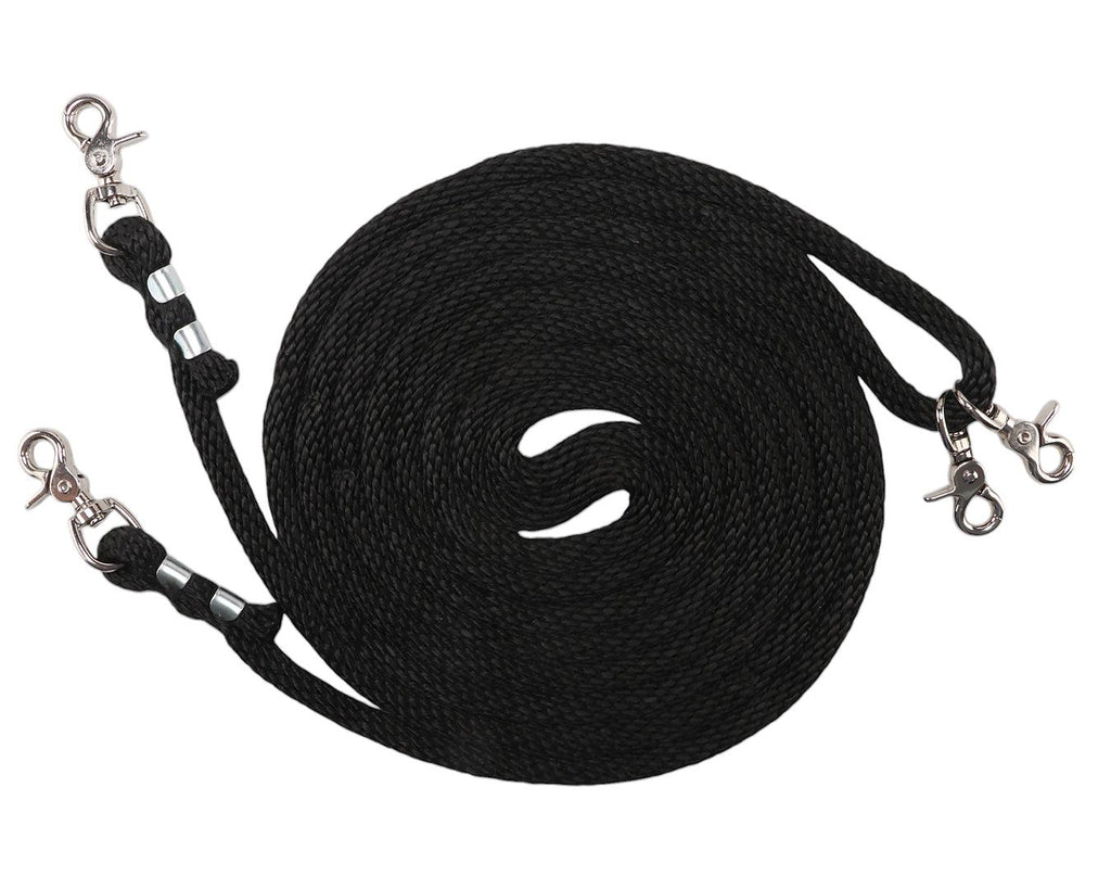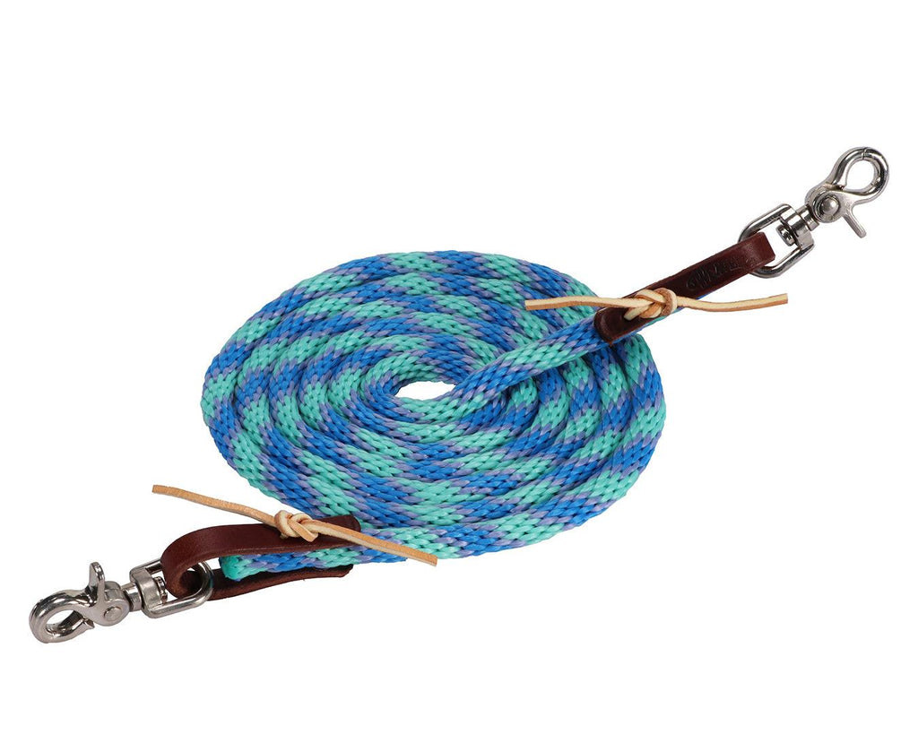 One of the standout features of this poly roper rein is its exciting color combinations that are sure to turn heads. The striking blend of colors adds a unique touch of style to your tack collection, making you stand out in any rodeo event or trail ride.