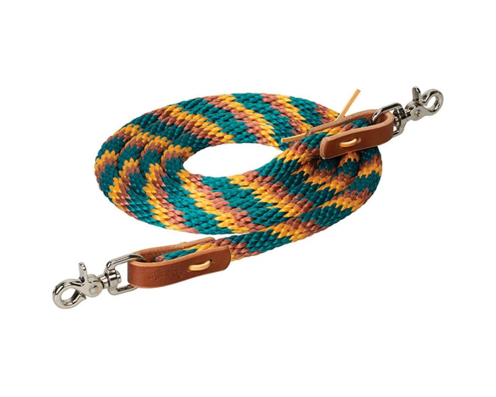 In summary, the Weaver Poly Roper Rein is a must-have for anyone looking for a reliable and stylish roper rein. It is made with top-quality materials and designed to withstand any weather condition. With its unique color combinations and great feel in your hands, this rein is a great addition to any tack collection.
